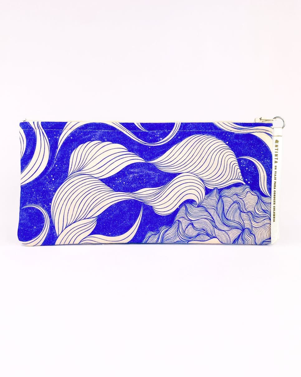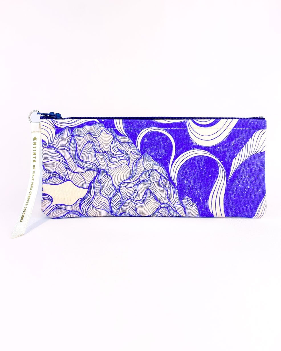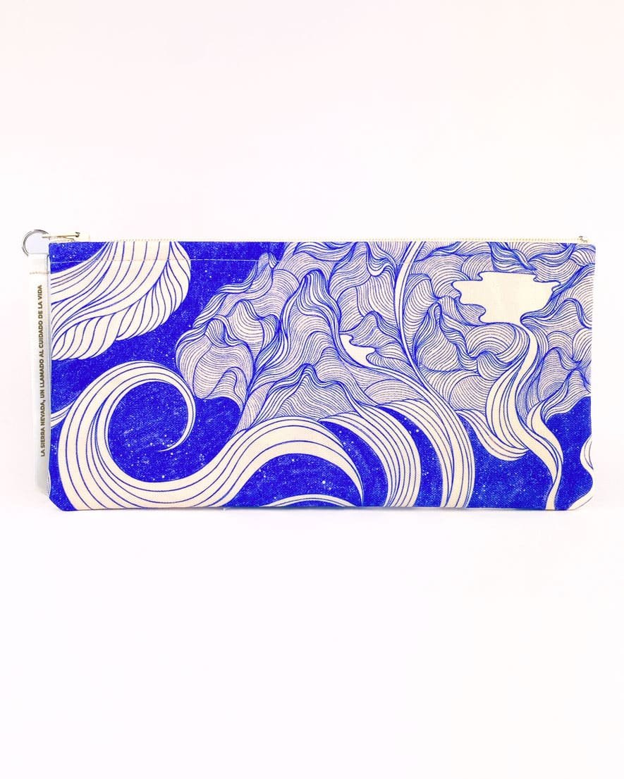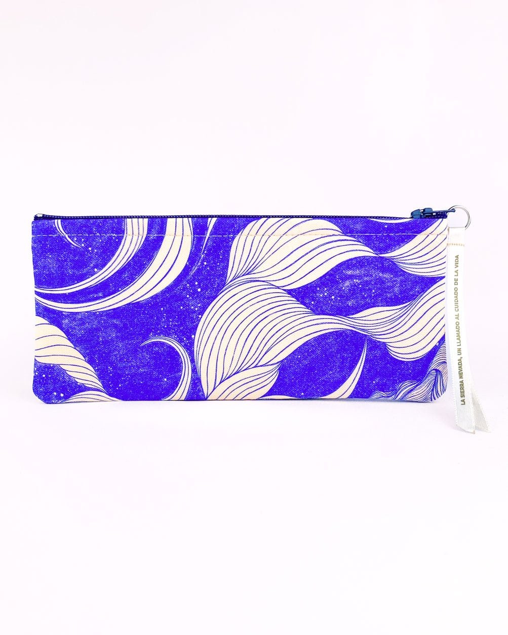 Cartuchera con nuestro estampado  El Fluir natural del Agua, movimiento cíclico y vital  El movimiento armónico y natural del agua, un ciclo que posibilita la vida de todo lo que está en la naturaleza. Fuerza vital y espiritual que fluye desde las lagunas y baja por los ríos para alimentar el mar, y se eleva de nuevo a la cima de La Sierra en forma de vapor y nubes, para cubrir de nuevo la montaña de nieve.”