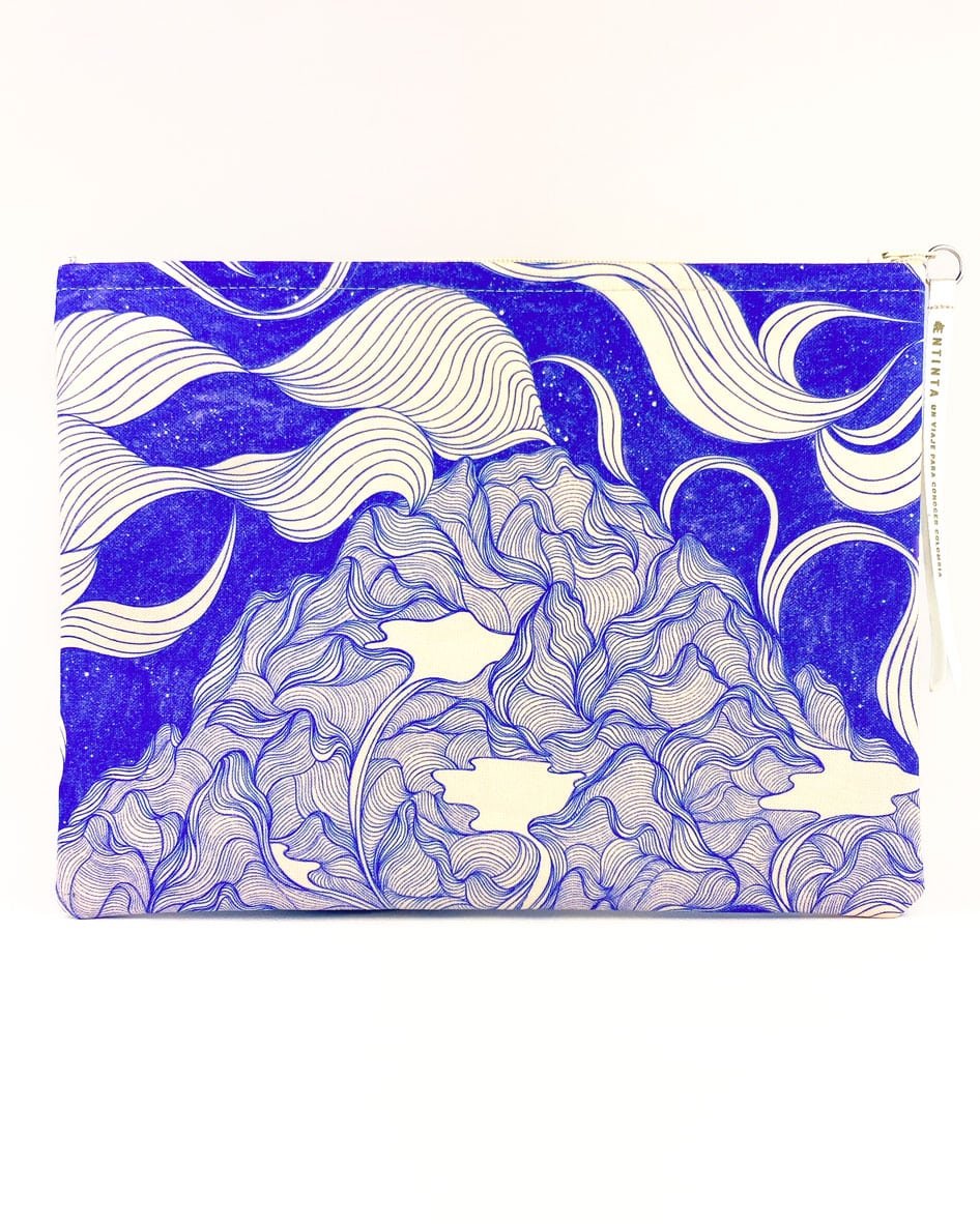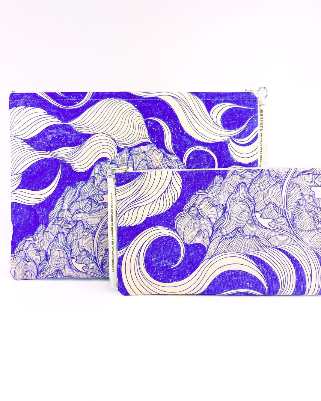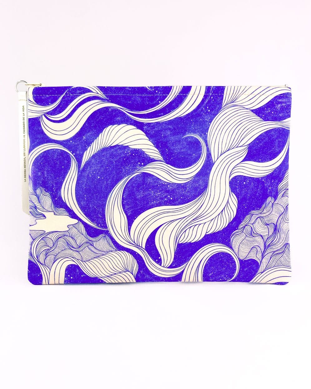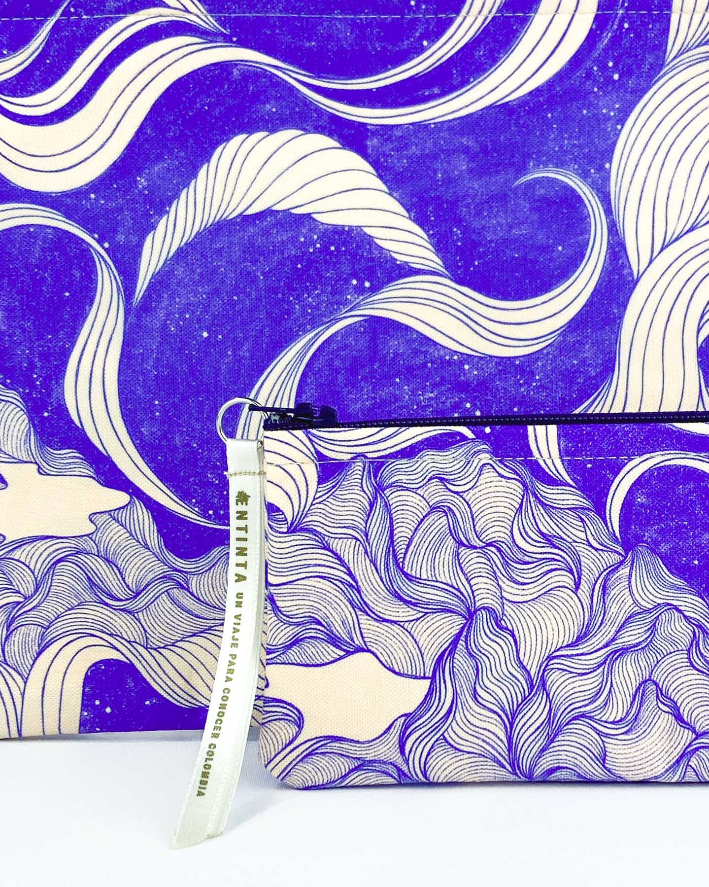 Cartuchera con nuestro estampado  El Fluir natural del Agua, movimiento cíclico y vital  El movimiento armónico y natural del agua, un ciclo que posibilita la vida de todo lo que está en la naturaleza. Fuerza vital y espiritual que fluye desde las lagunas y baja por los ríos para alimentar el mar, y se eleva de nuevo a la cima de La Sierra en forma de vapor y nubes, para cubrir de nuevo la montaña de nieve.”