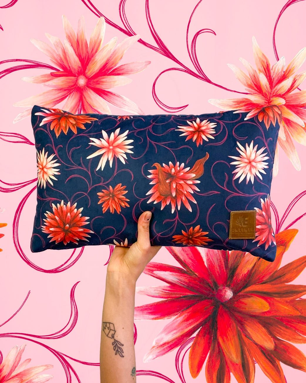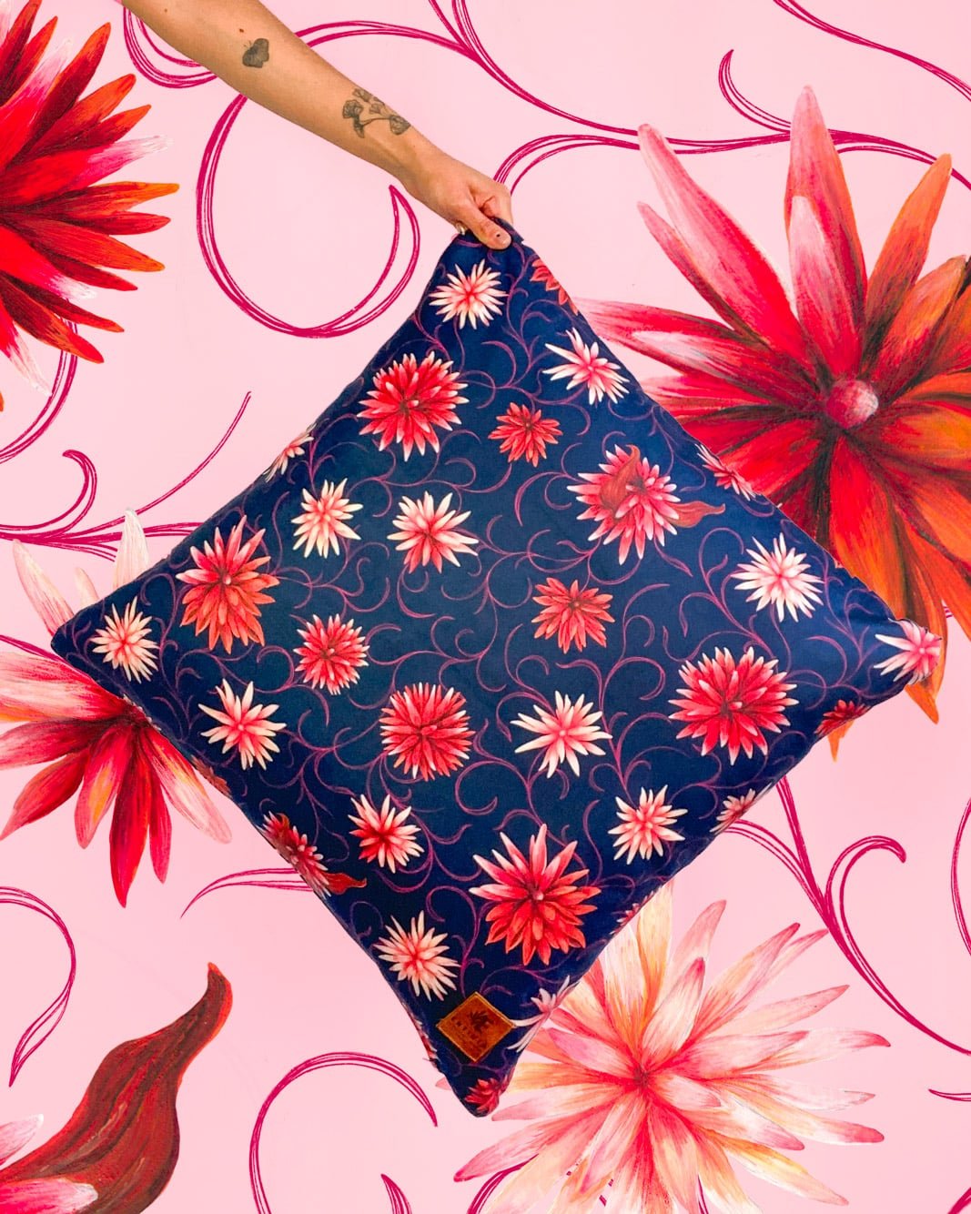 Cojines con nuestro estampado “La Eterna Flor de Inírida – Entre la selva verde y las arenas blancas del Guainía crece la Flor de Inírida. Flor endémica de la región que al secarse mantiene su estructura”.
