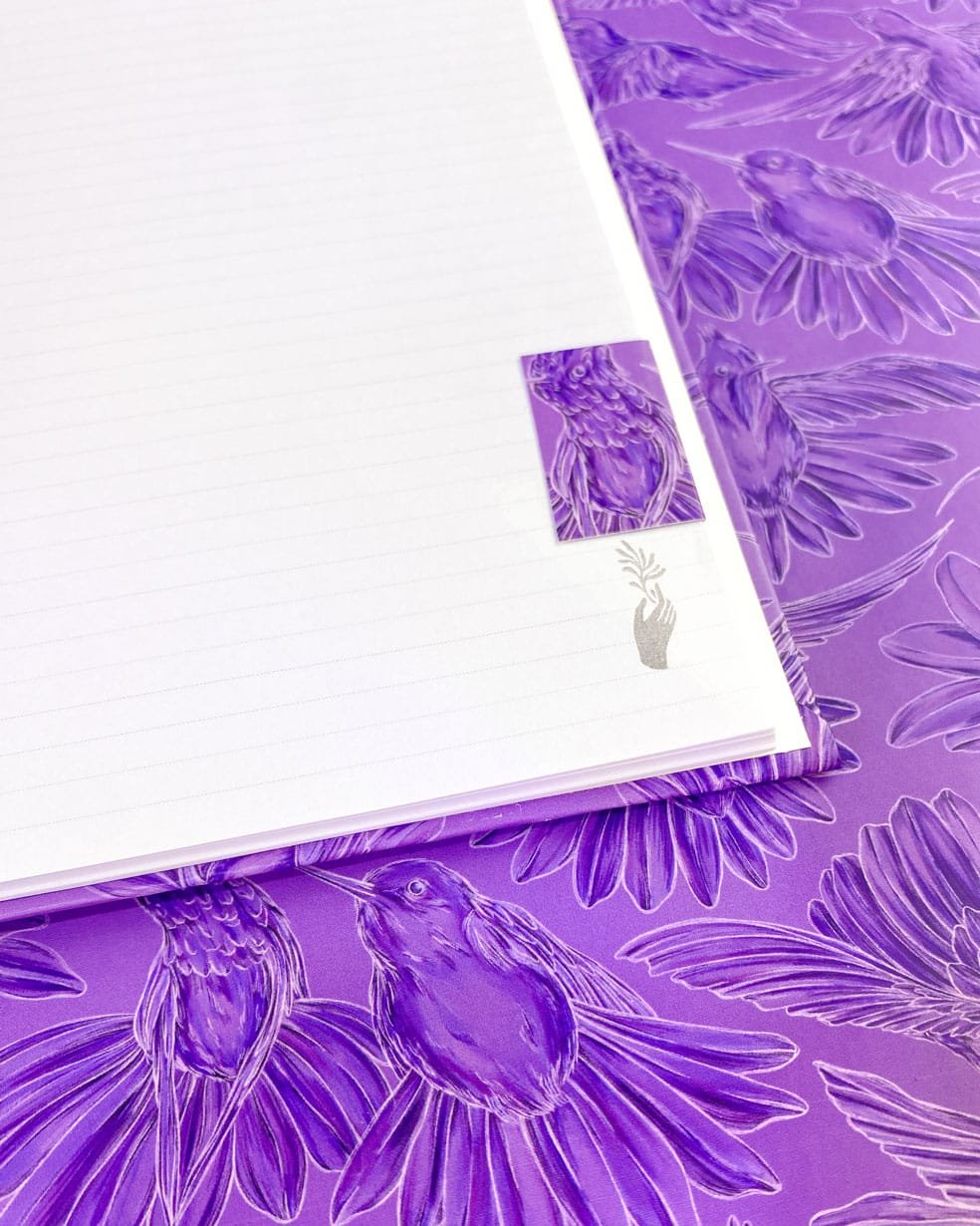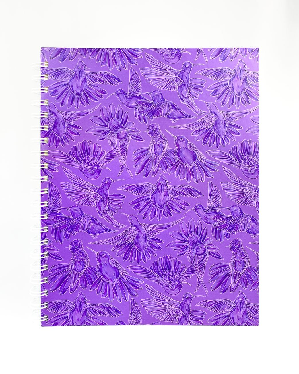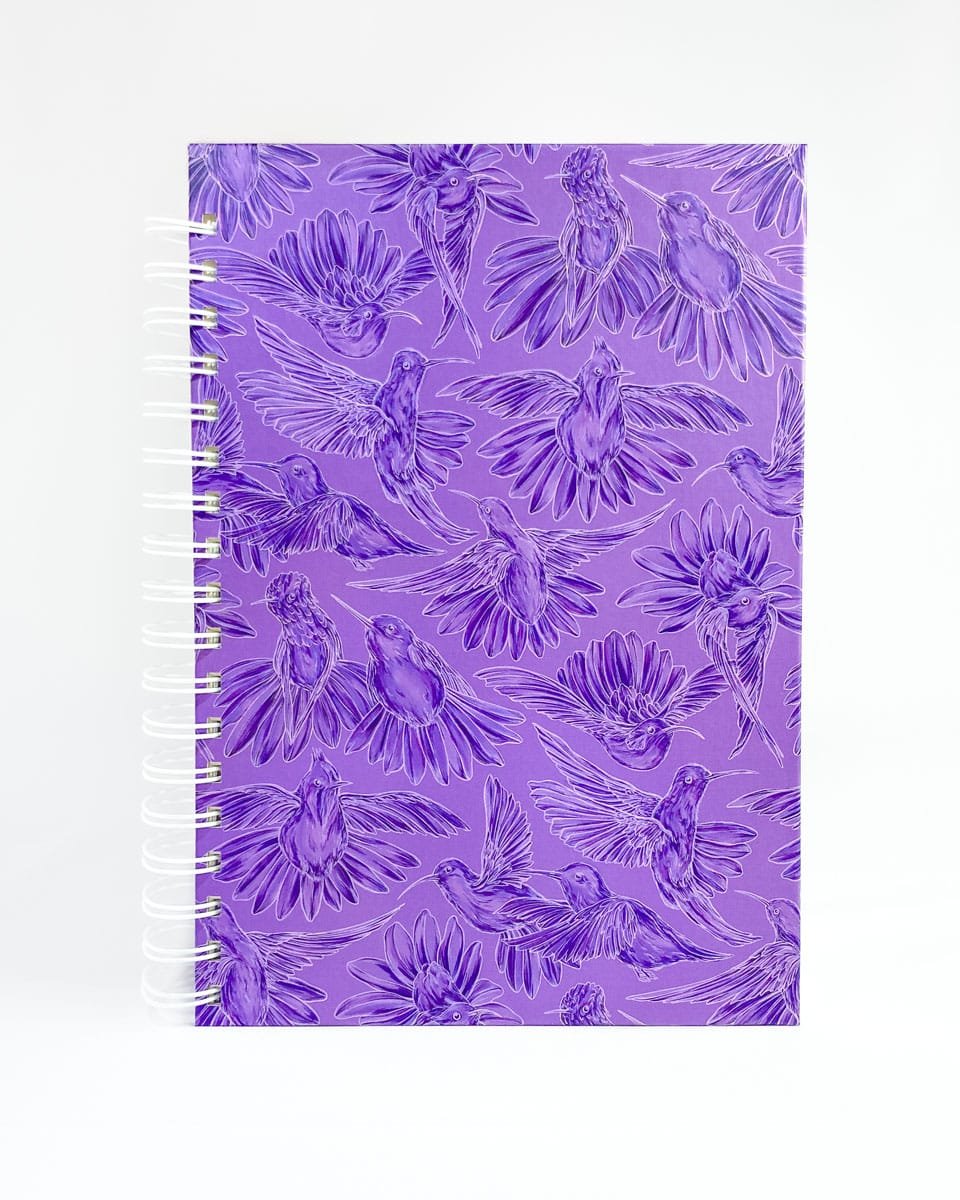 Cuaderno 4 materias de 160 hojas con nuestro estampado “Colibríes, mensajeros del mundo natural y espiritual – Con sus alas desplegadas y plumajes vistosos los colibríes vuelan y bailan por La Sierra Nevada. Con sus cantos relatan los secretos de la montaña y propagan los mensajes de la naturaleza, pronosticando las lluvias y sequías, y anunciando los tiempos de siembra y cosecha.”