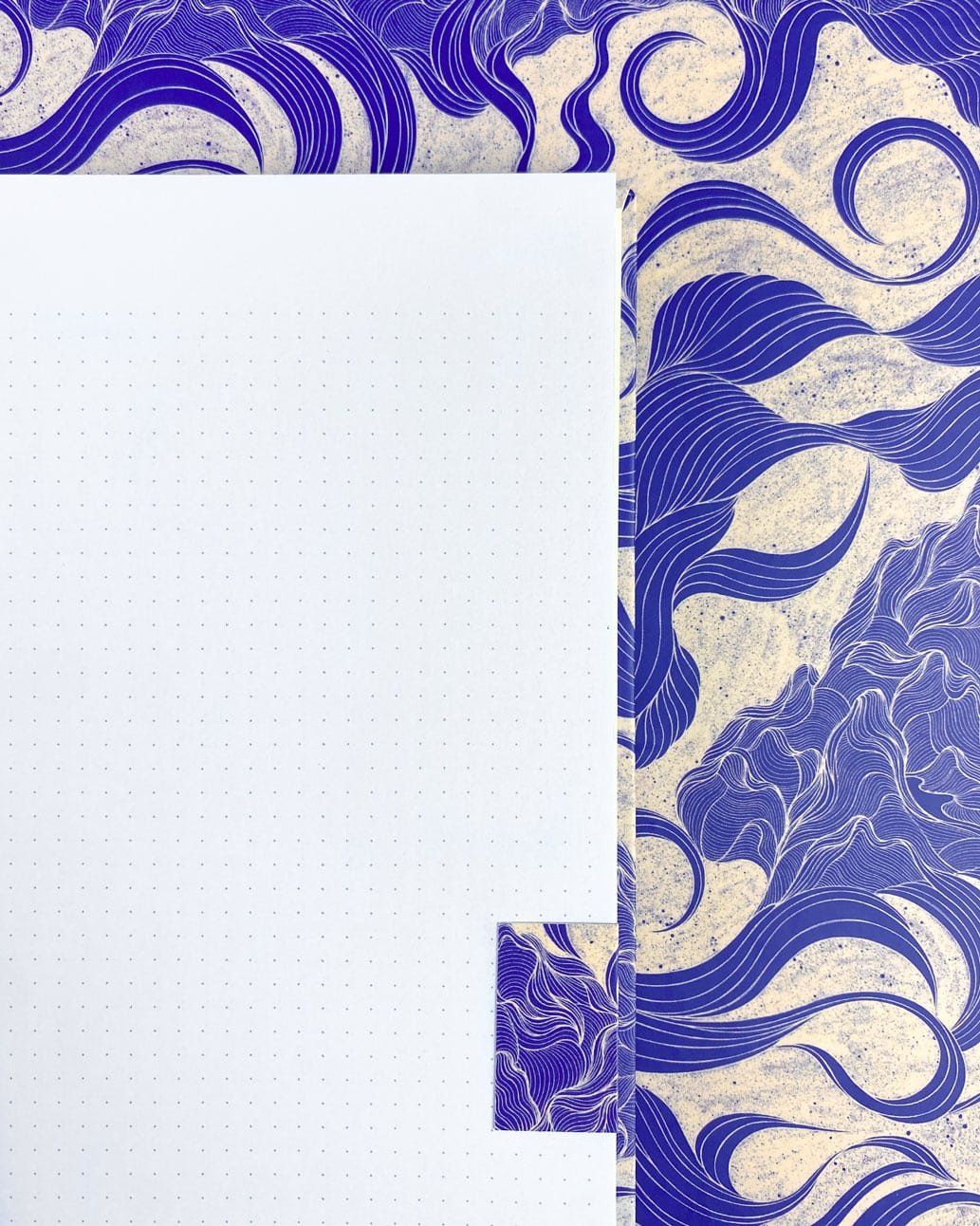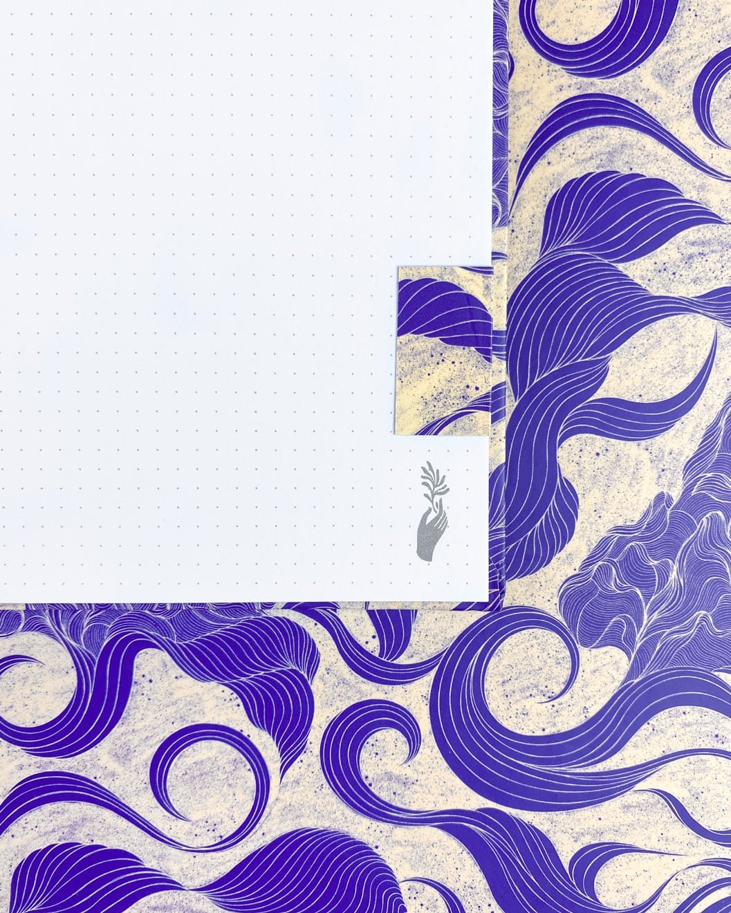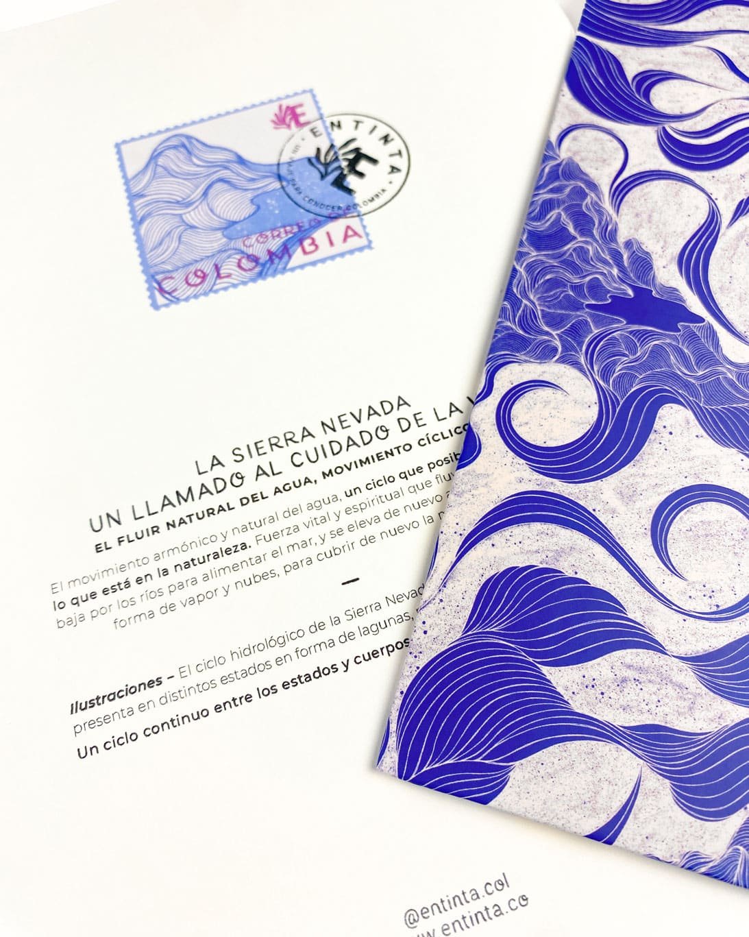 Cuaderno 4 materias de 160 hojas con nuestro estampado  El Fluir natural del Agua, movimiento cíclico y vital  El movimiento armónico y natural del agua, un ciclo que posibilita la vida de todo lo que está en la naturaleza. Fuerza vital y espiritual que fluye desde las lagunas y baja por los ríos para alimentar el mar, y se eleva de nuevo a la cima de La Sierra en forma de vapor y nubes, para cubrir de nuevo la montaña de nieve.”