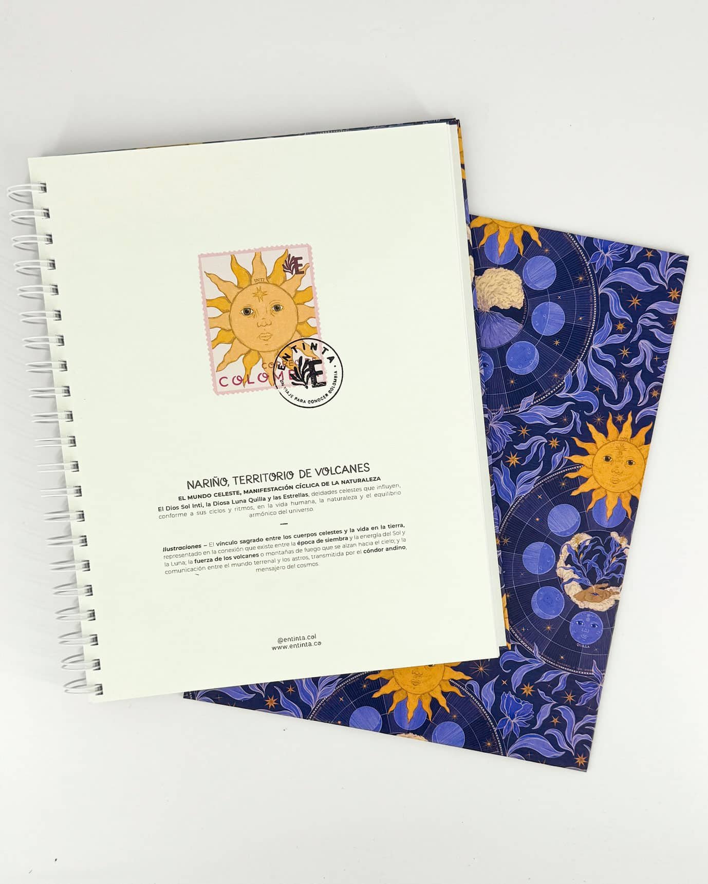 Cuaderno 4 materias de 160 hojas con nuestro estampado  “Fauna Silvestre en las Montañas de Fuego – Seres de la naturaleza que habitan y protegen las montañas de Nariño. Cobijados por la fuerza de la montaña accionan en conjunto por el bienestar de la tierra y la red de vida que conforma el territorio.”