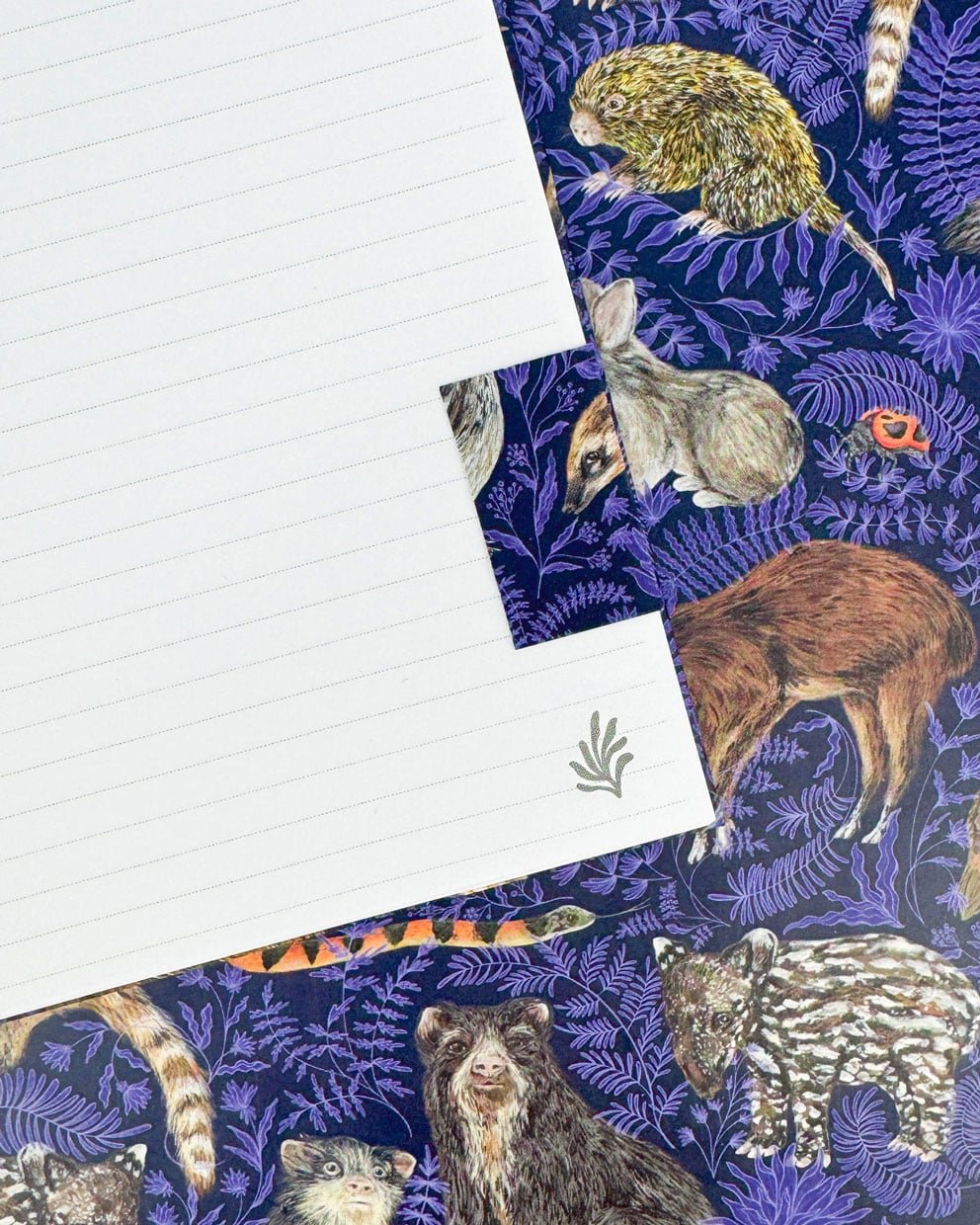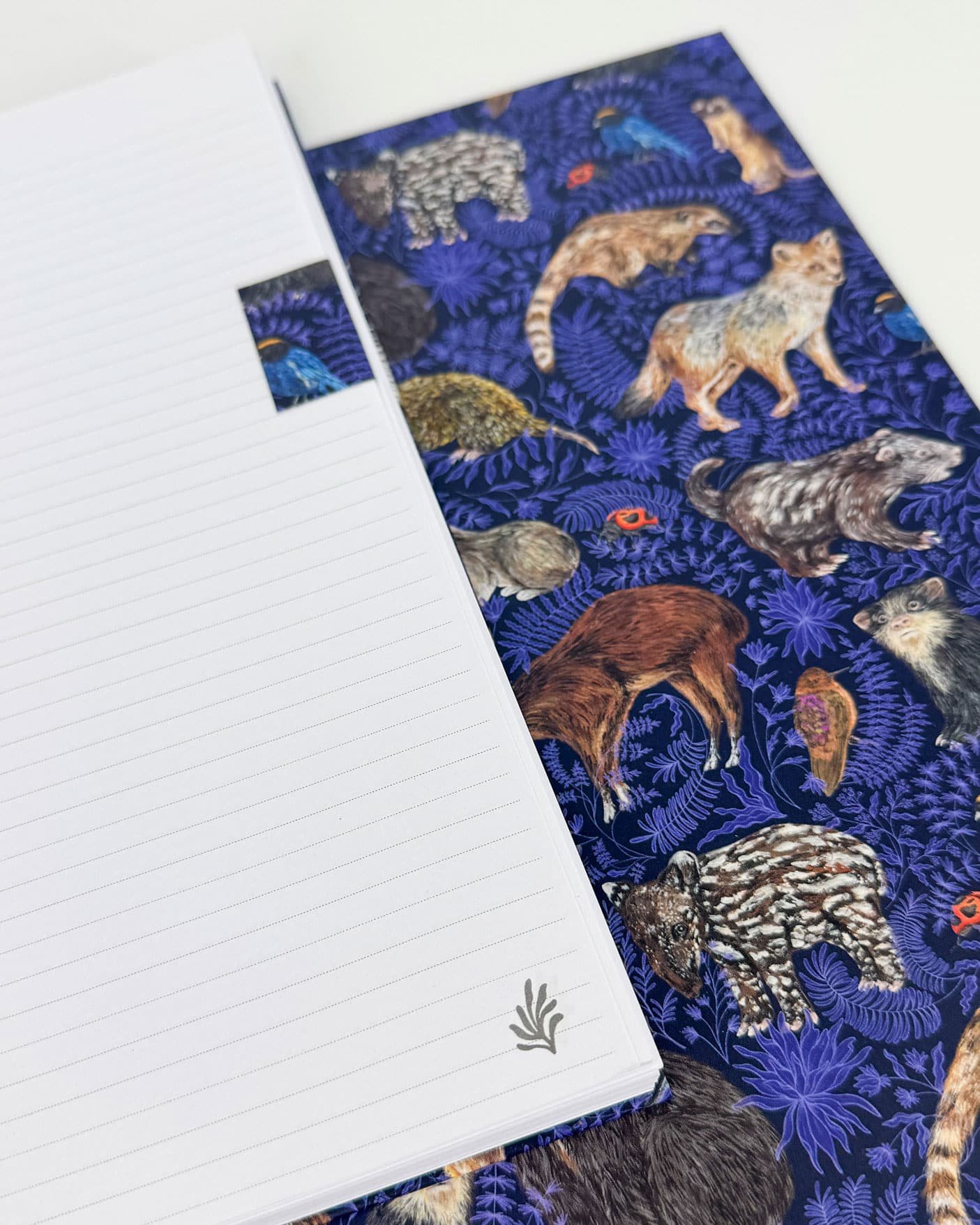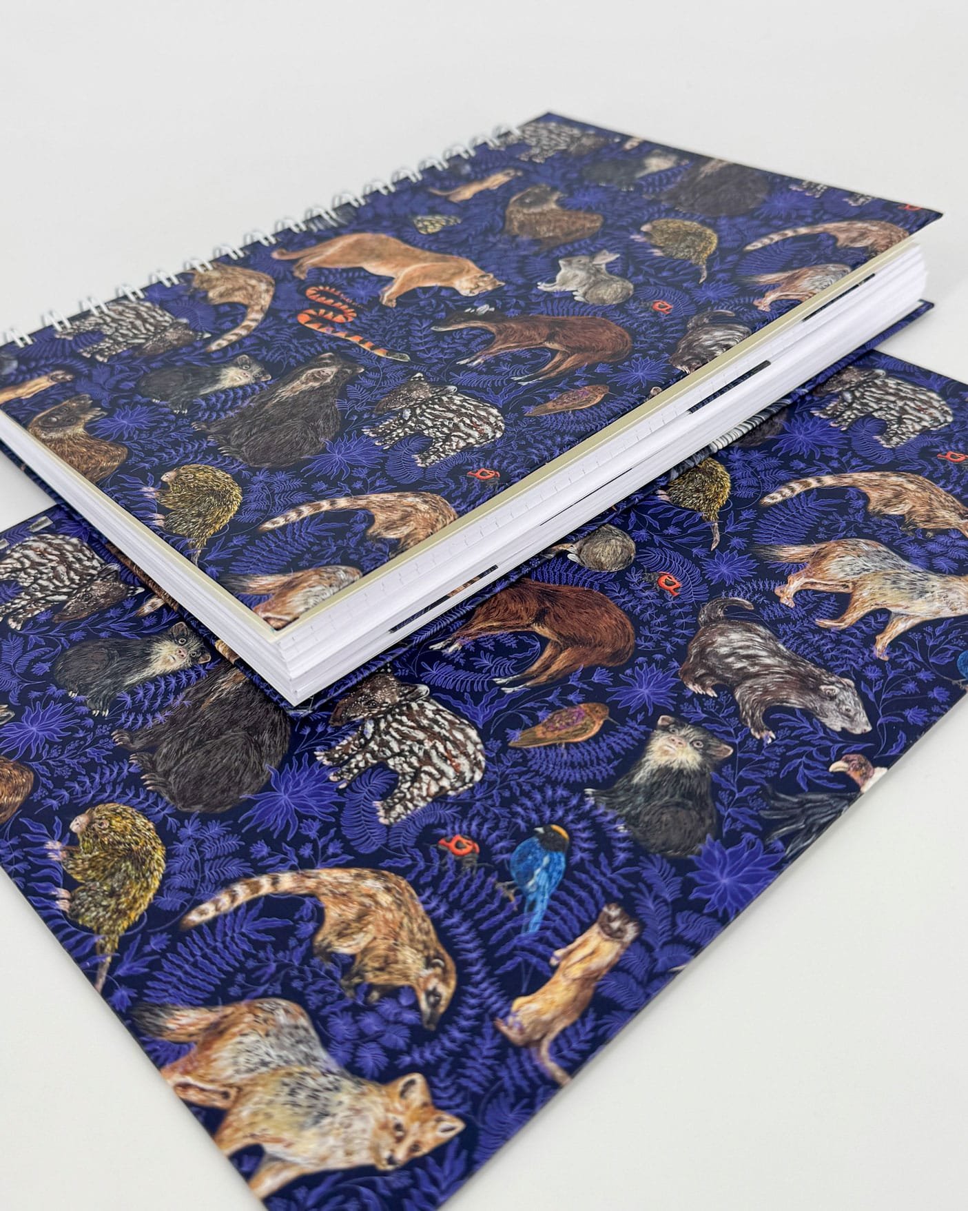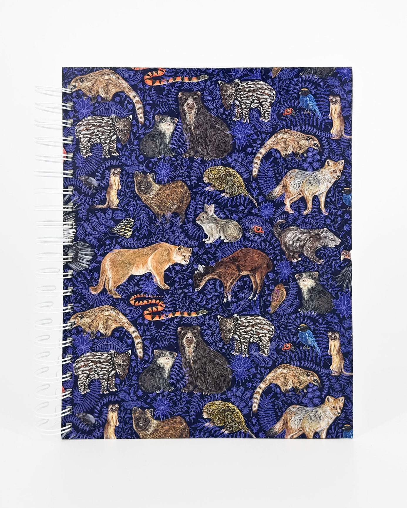 Cuaderno 4 materias de 160 hojas con nuestro estampado  “Fauna Silvestre en las Montañas de Fuego – Seres de la naturaleza que habitan y protegen las montañas de Nariño. Cobijados por la fuerza de la montaña accionan en conjunto por el bienestar de la tierra y la red de vida que conforma el territorio.”