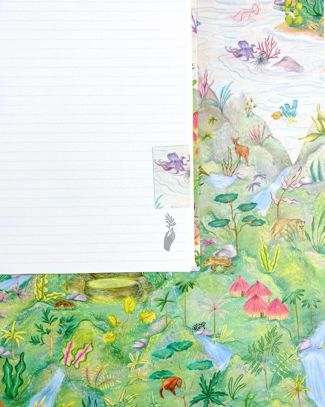 Cuaderno 4 materias de 160 hojas con nuestro estampado  La Sierra Nevada, un ecosistema de vidas en conexión – De agudas pendientes y abarcando todos los pisos térmicos, La Sierra es un espacio de intercambio de vitalidad. Un escenario natural único que nos pone en manifiesto que el convivir en reciprocidad es lo que garantiza la vida.”