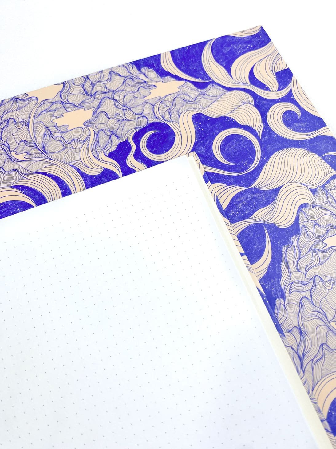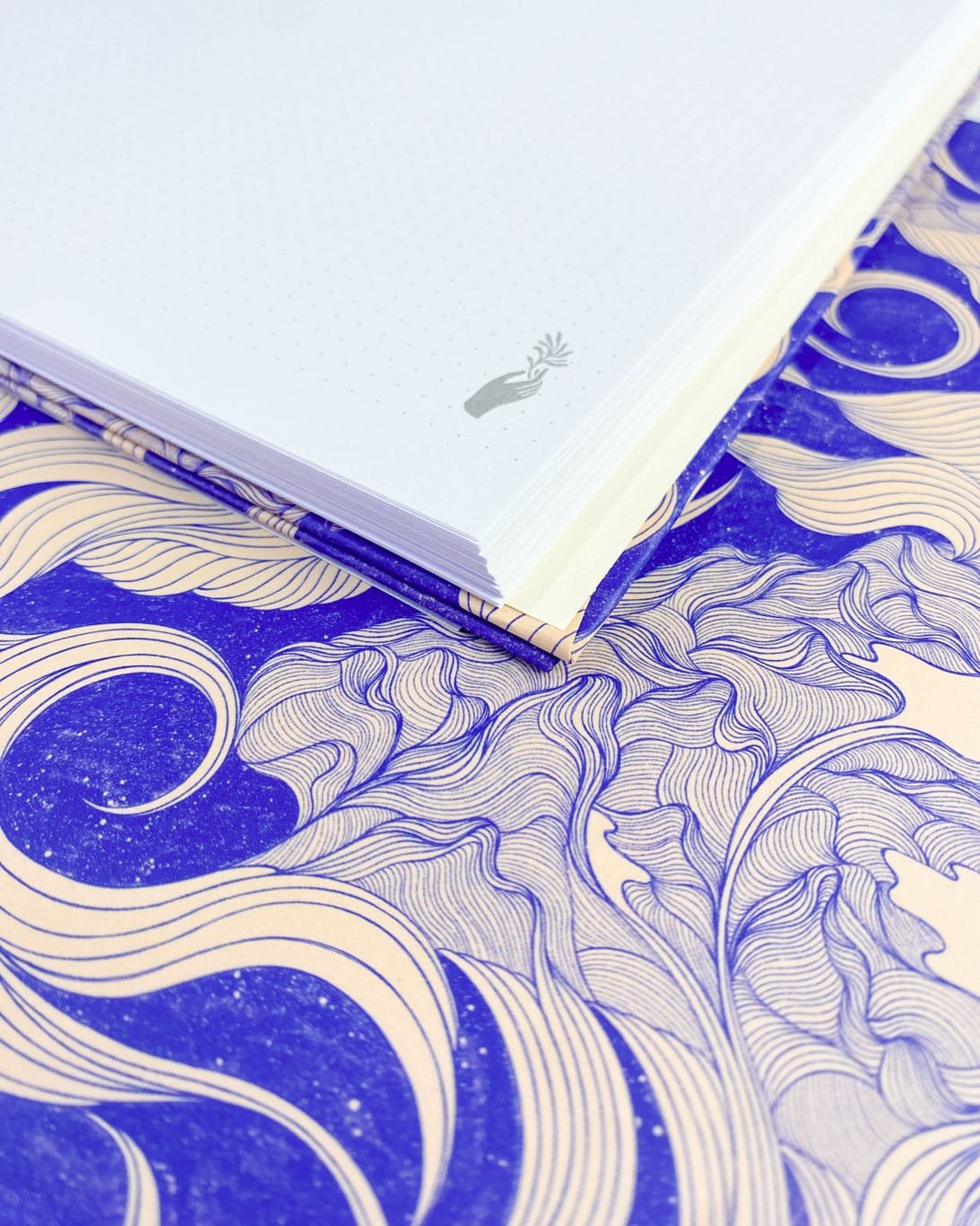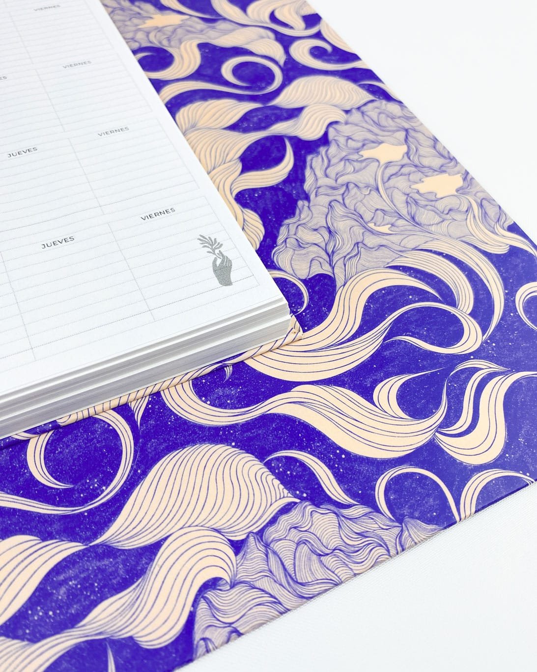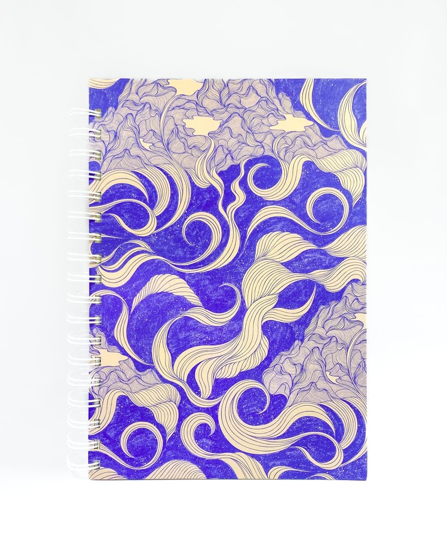 Cuaderno  de 80 hojas con nuestro estampado  El Fluir natural del Agua, movimiento cíclico y vital  El movimiento armónico y natural del agua, un ciclo que posibilita la vida de todo lo que está en la naturaleza. Fuerza vital y espiritual que fluye desde las lagunas y baja por los ríos para alimentar el mar, y se eleva de nuevo a la cima de La Sierra en forma de vapor y nubes, para cubrir de nuevo la montaña de nieve.”