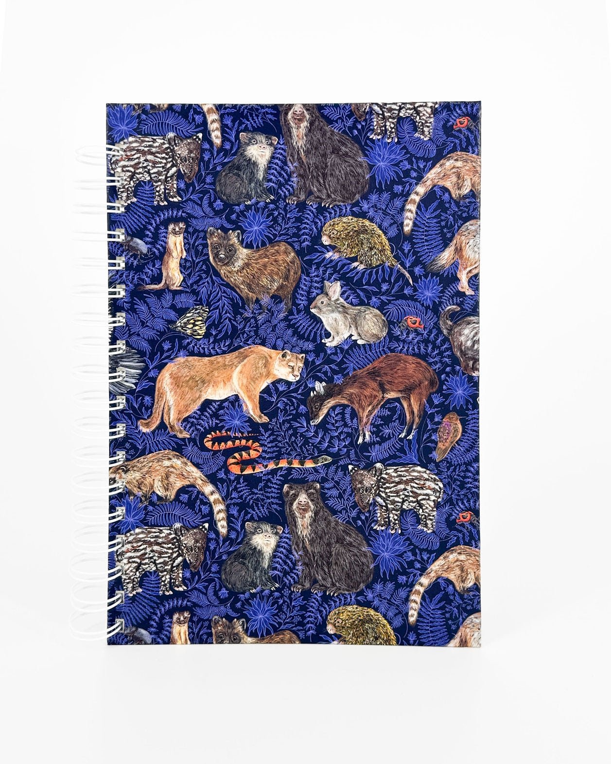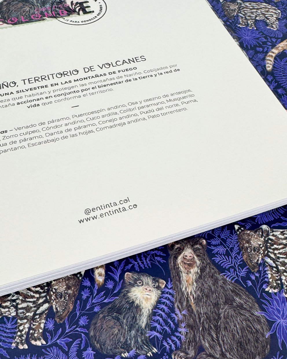 Cuaderno de 80 hojas con nuestro estampado  “Fauna Silvestre en las Montañas de Fuego – Seres de la naturaleza que habitan y protegen las montañas de Nariño. Cobijados por la fuerza de la montaña accionan en conjunto por el bienestar de la tierra y la red de vida que conforma el territorio.”