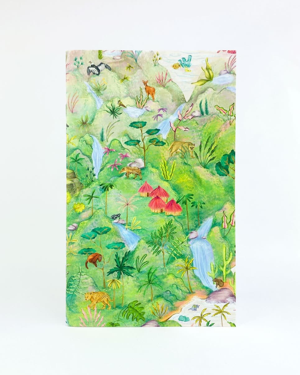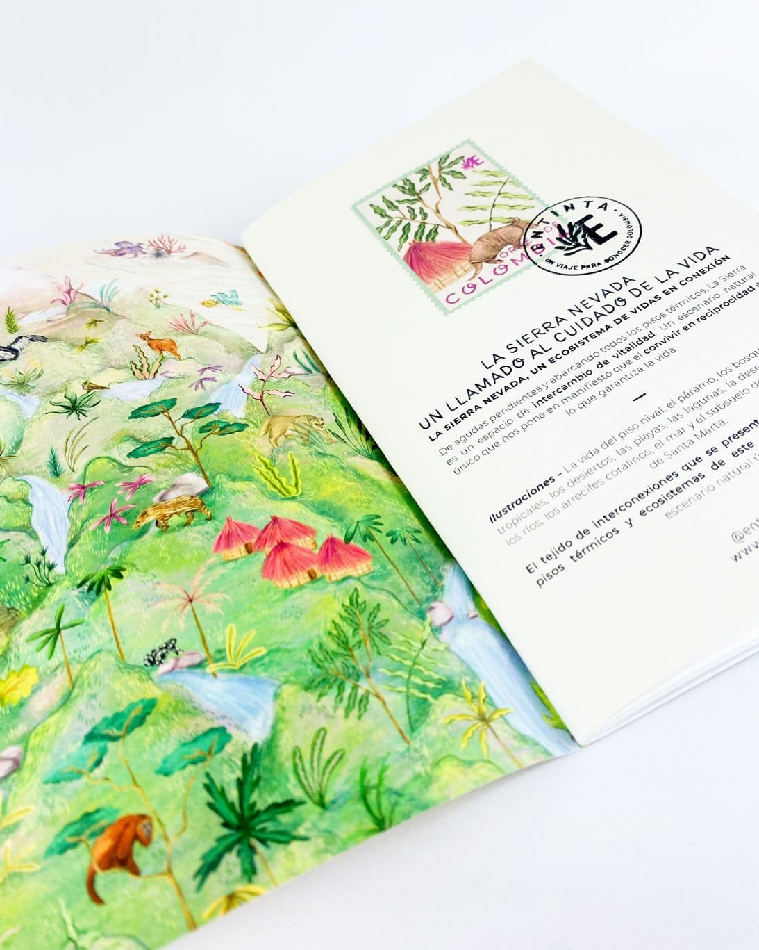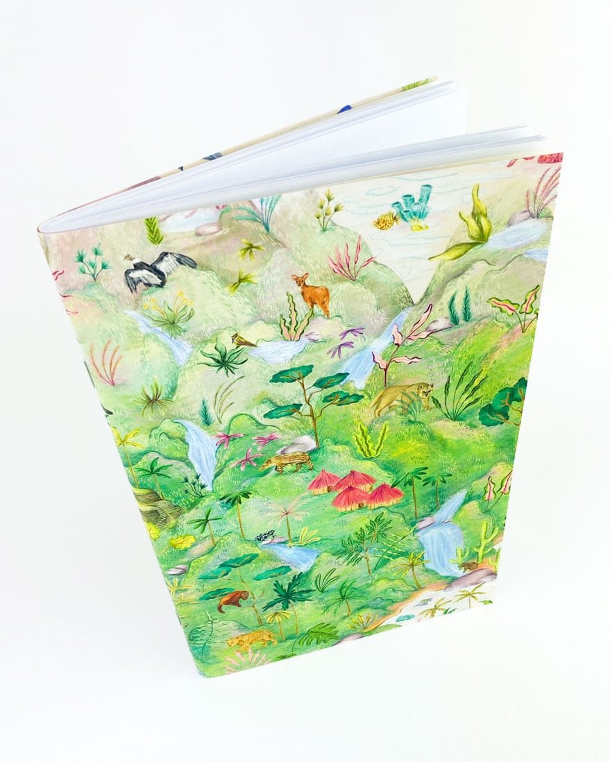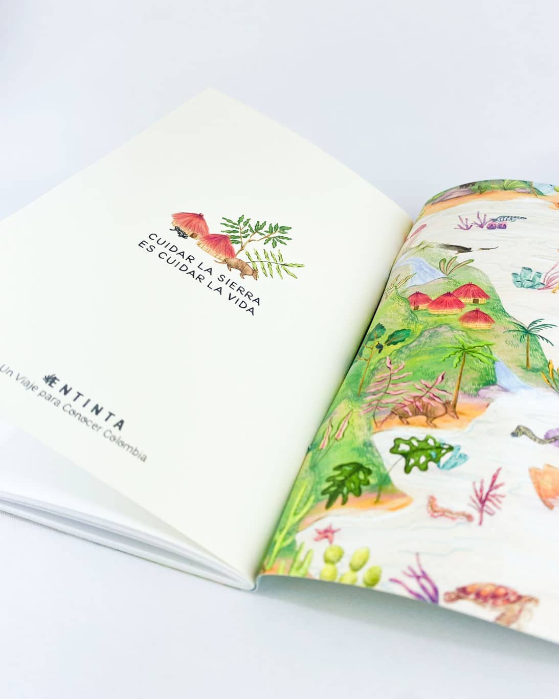 Cuaderno tamaño media carta con nuestro estampado  La Sierra Nevada, un ecosistema de vidas en conexión – De agudas pendientes y abarcando todos los pisos térmicos, La Sierra es un espacio de intercambio de vitalidad. Un escenario natural único que nos pone en manifiesto que el convivir en reciprocidad es lo que garantiza la vida.”
