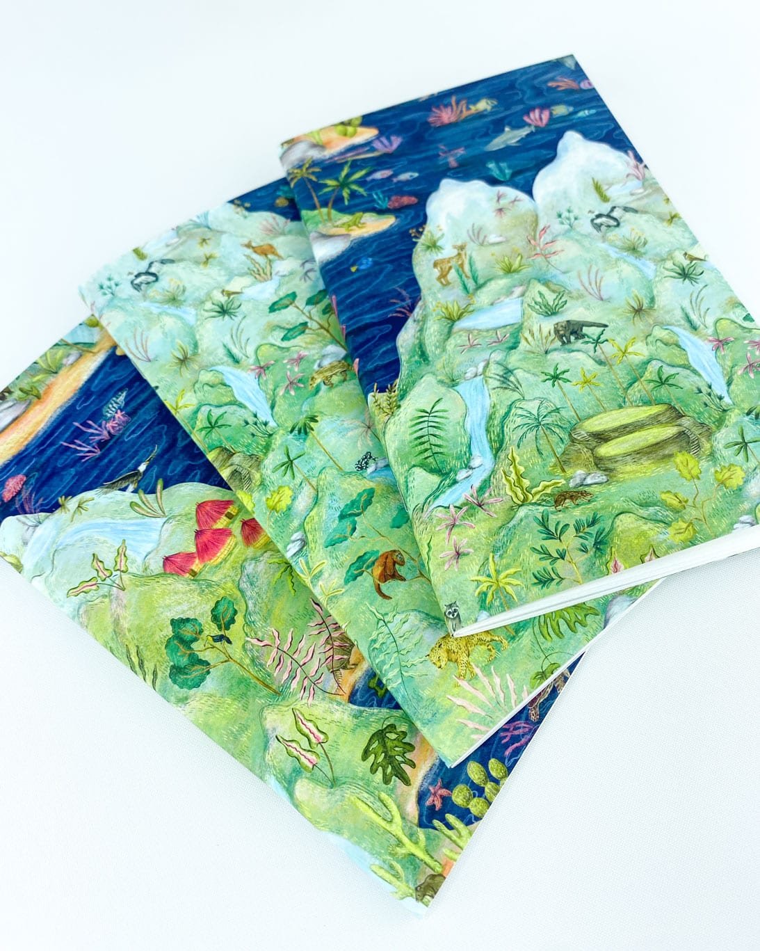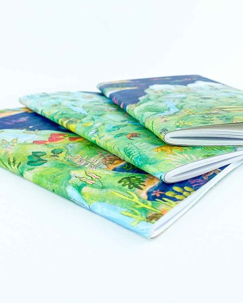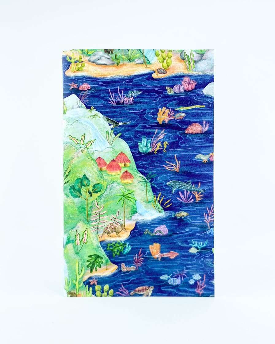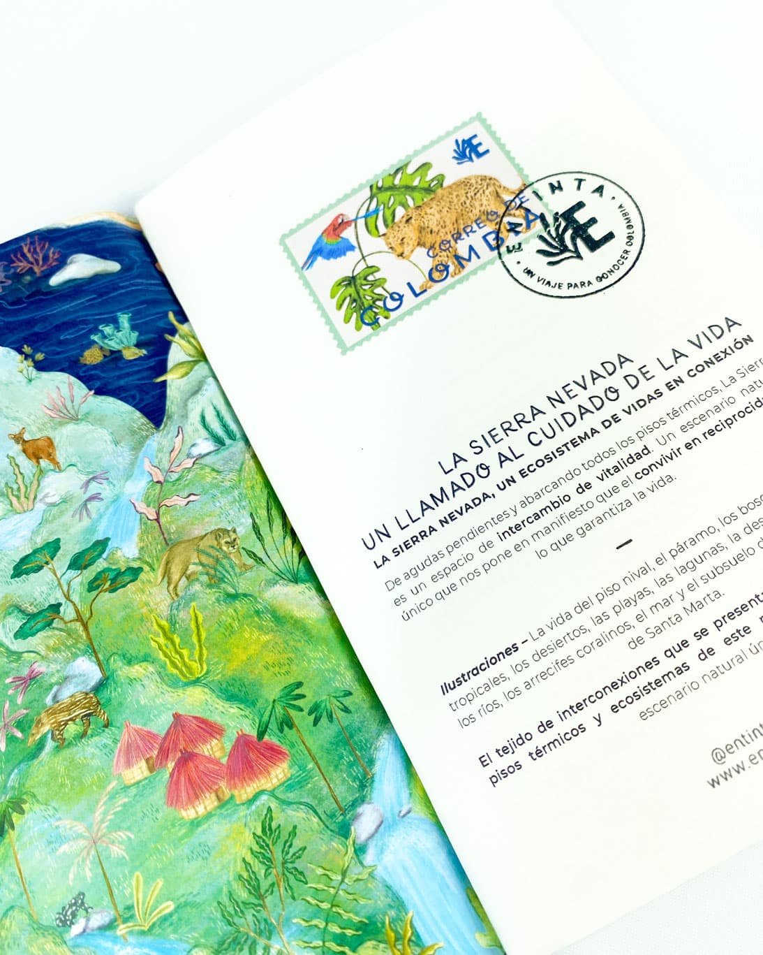 Cuaderno tamaño media carta con nuestro estampado  La Sierra Nevada, un ecosistema de vidas en conexión – De agudas pendientes y abarcando todos los pisos térmicos, La Sierra es un espacio de intercambio de vitalidad. Un escenario natural único que nos pone en manifiesto que el convivir en reciprocidad es lo que garantiza la vida.”