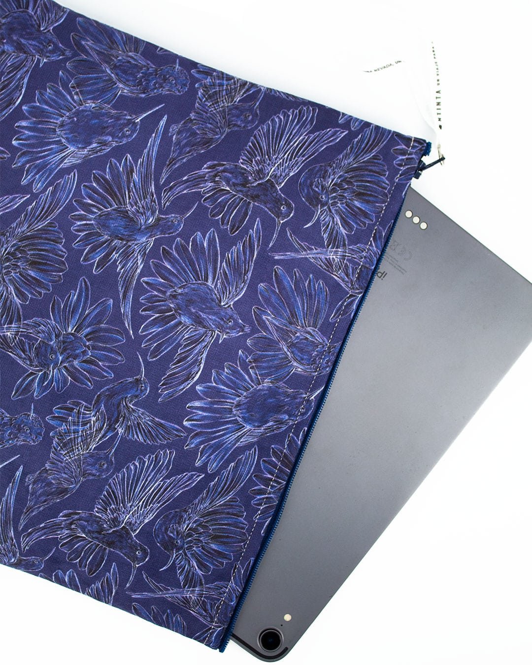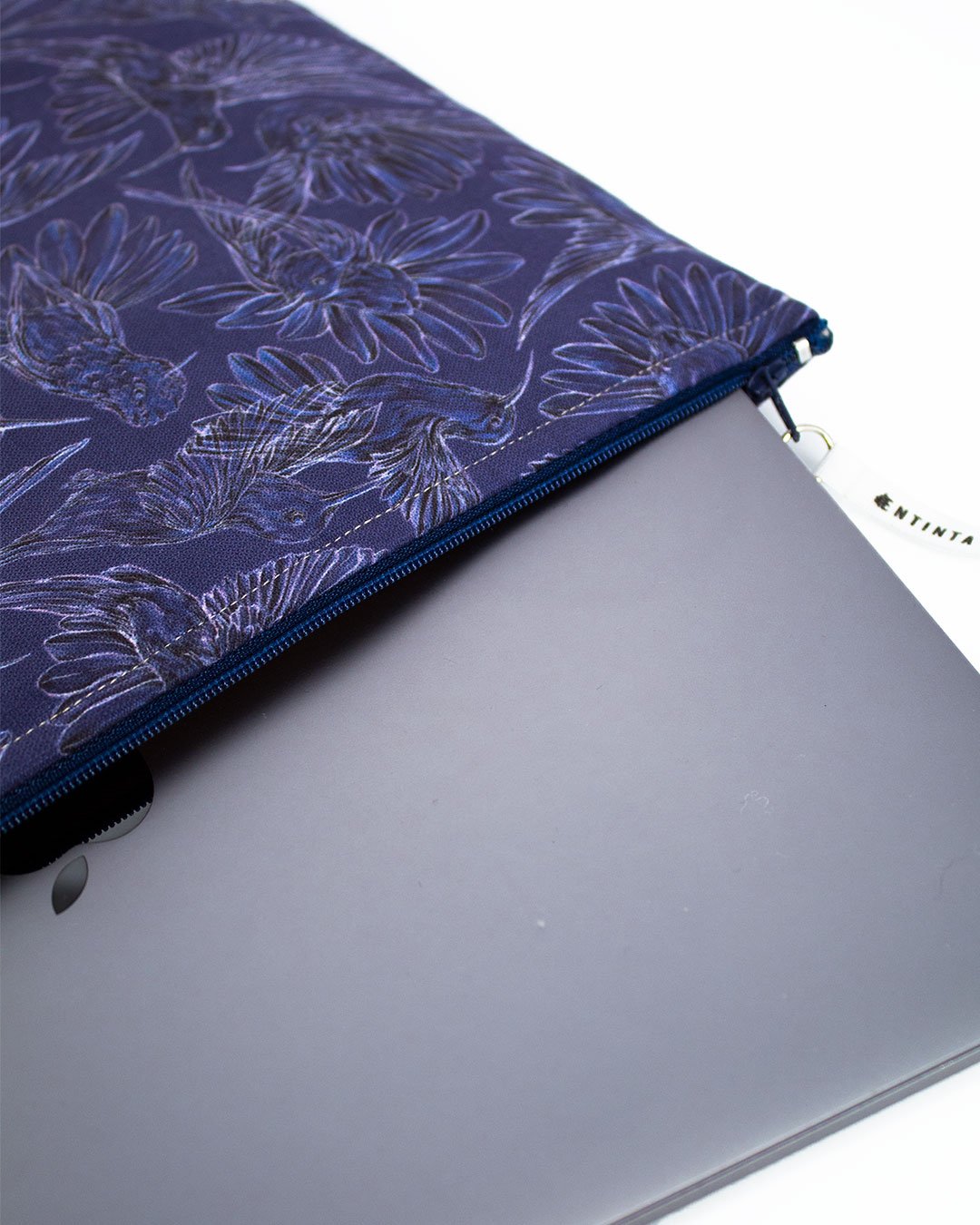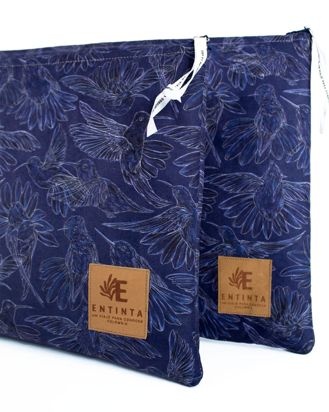Estuches para Tablet 11” y Portátil 13” con nuestro estampado “Colibríes, mensajeros del mundo natural y espiritual – Con sus alas desplegadas y plumajes vistosos los colibríes vuelan y bailan por La Sierra Nevada. Con sus cantos relatan los secretos de la montaña y propagan los mensajes de la naturaleza, pronosticando las lluvias y sequías, y anunciando los tiempos de siembra y cosecha.”