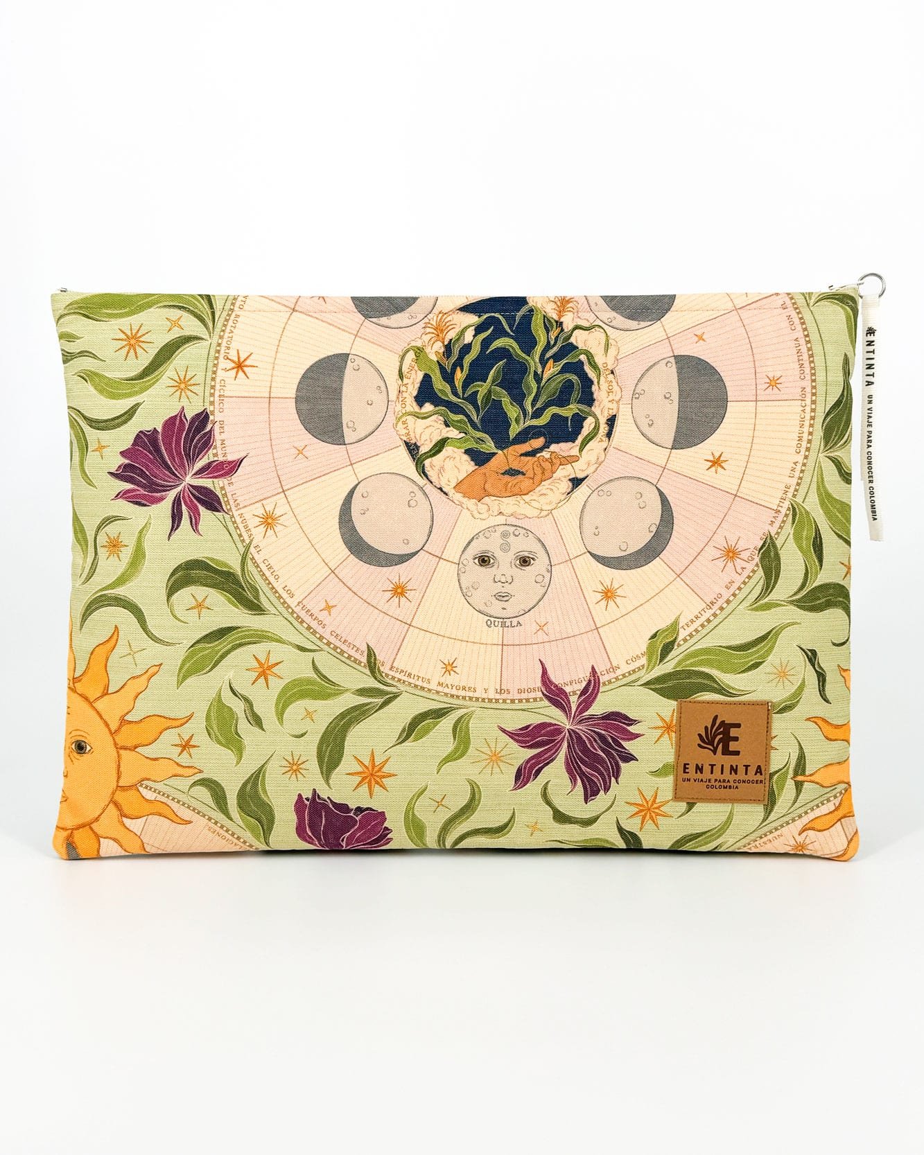 Estuches para Tablet 11” y Portátil 13”-15″ con nuestro estampado “El Mundo Celeste, manifestación cíclica de la naturaleza – El Dios Sol Inti, la Diosa Luna Quilla y las Estrellas, deidades celestes que influyen, conforme a sus ciclos y ritmos, en la vida humana, la naturaleza y el equilibrio armónico del universo.”