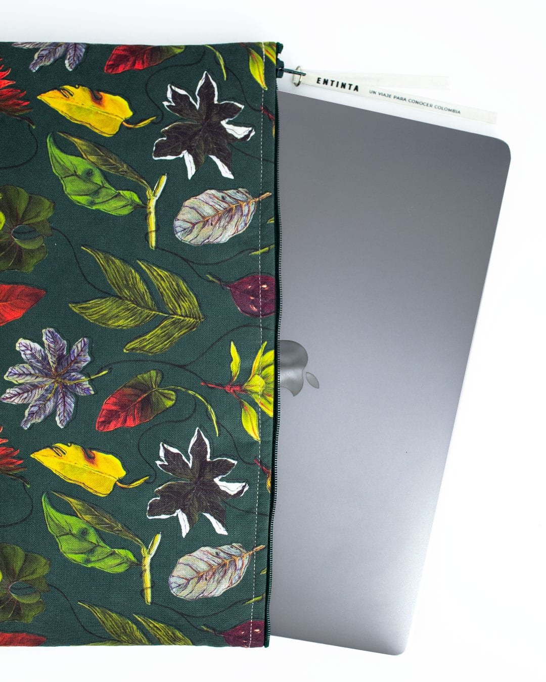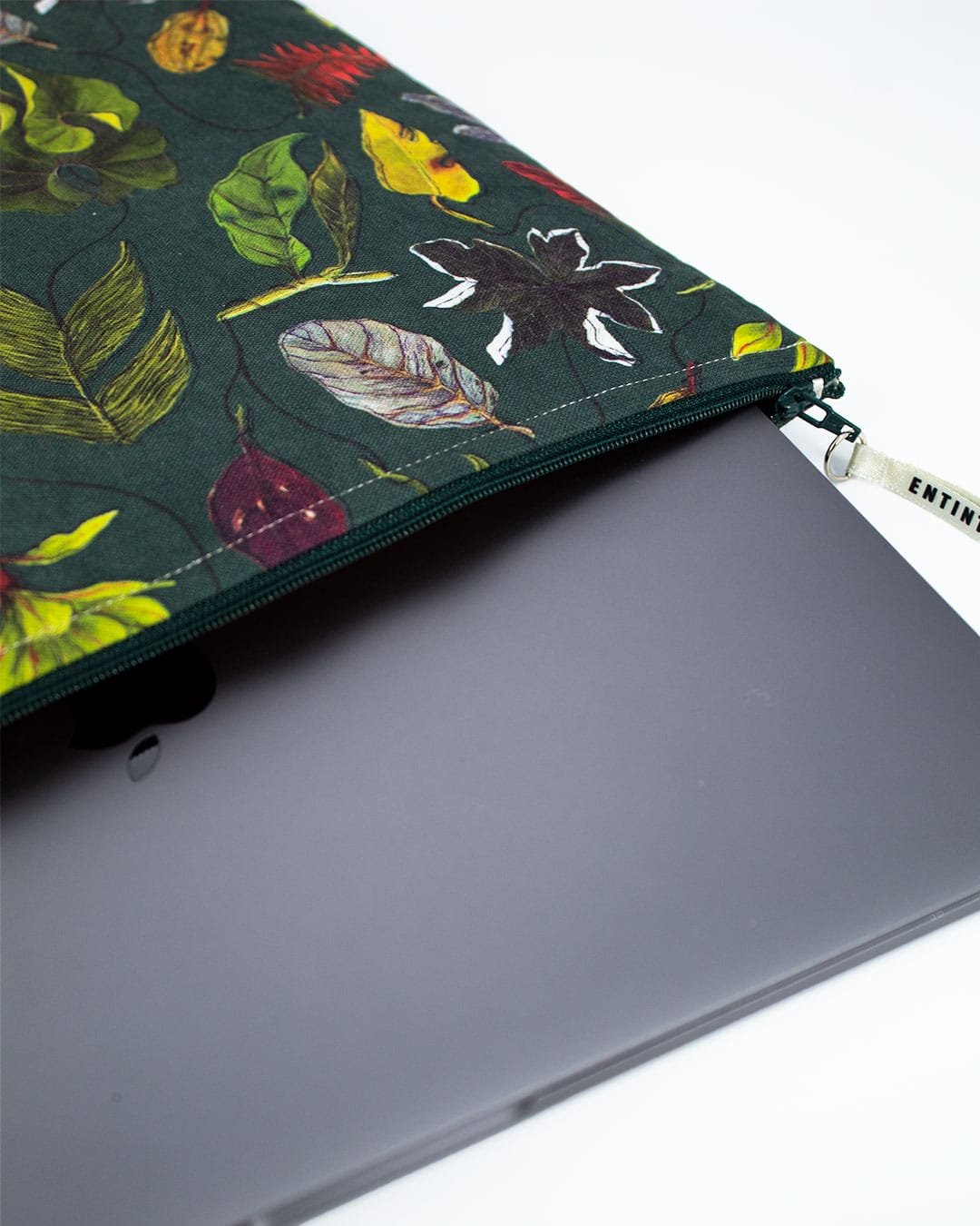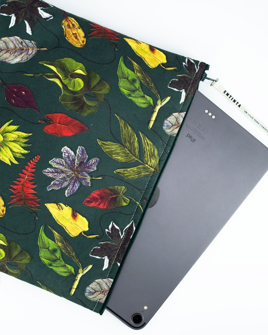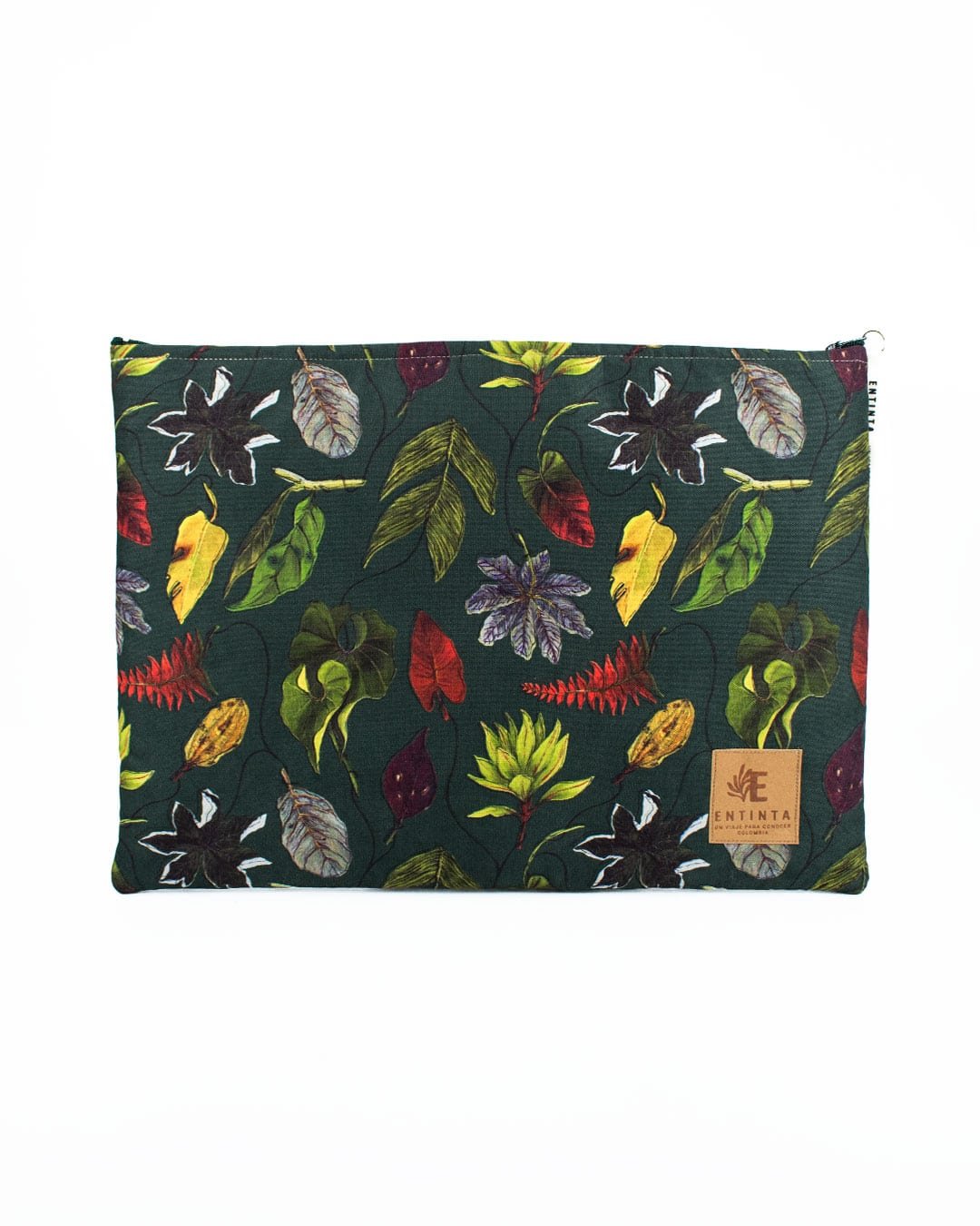 Estuches para Tablet 11”, Portátil 13” y 15″ con nuestro estampado “Hojas Multicolores y Desiguales – Verdes, naranjas y amarillas; con manchas, espinas y texturas adornan los troncos del bosque”.