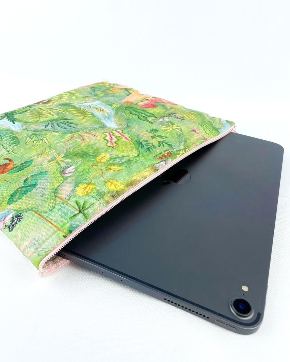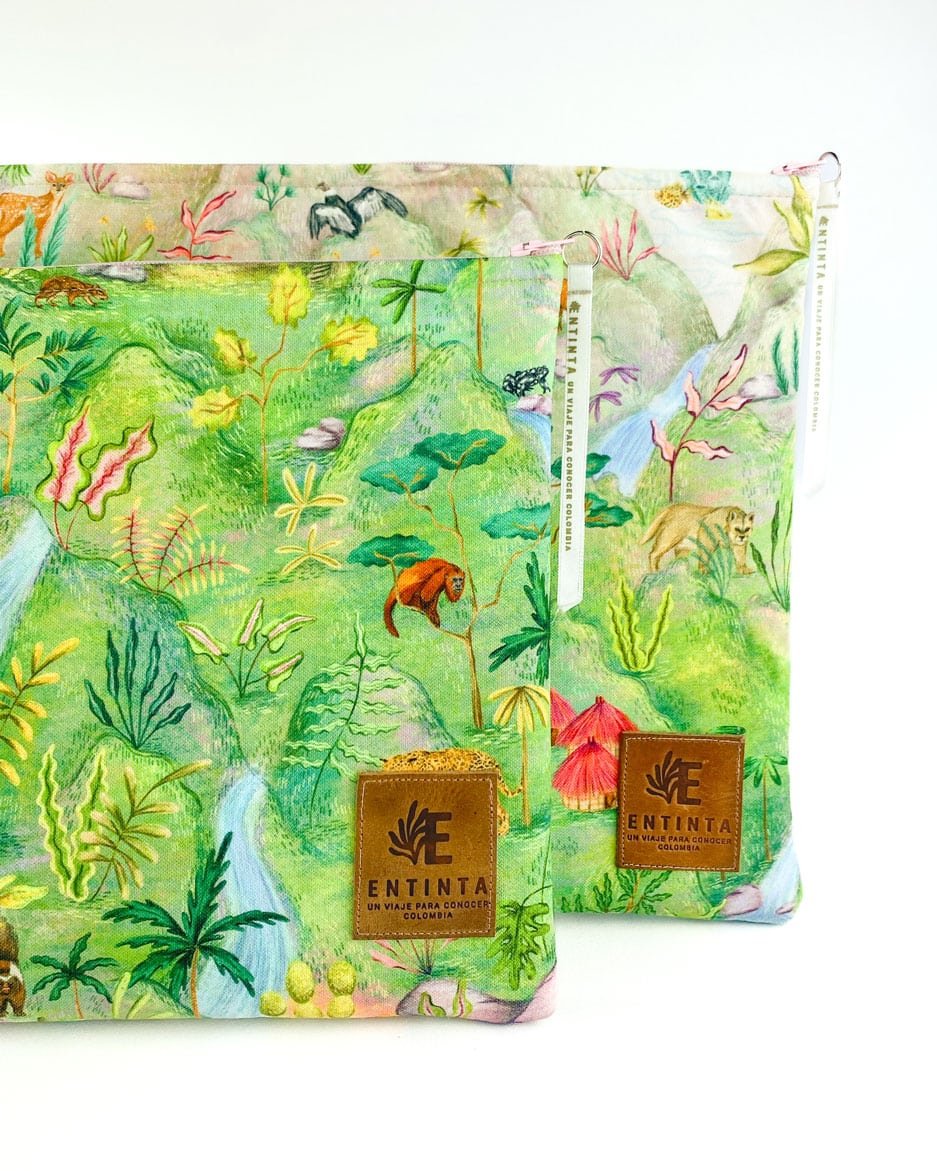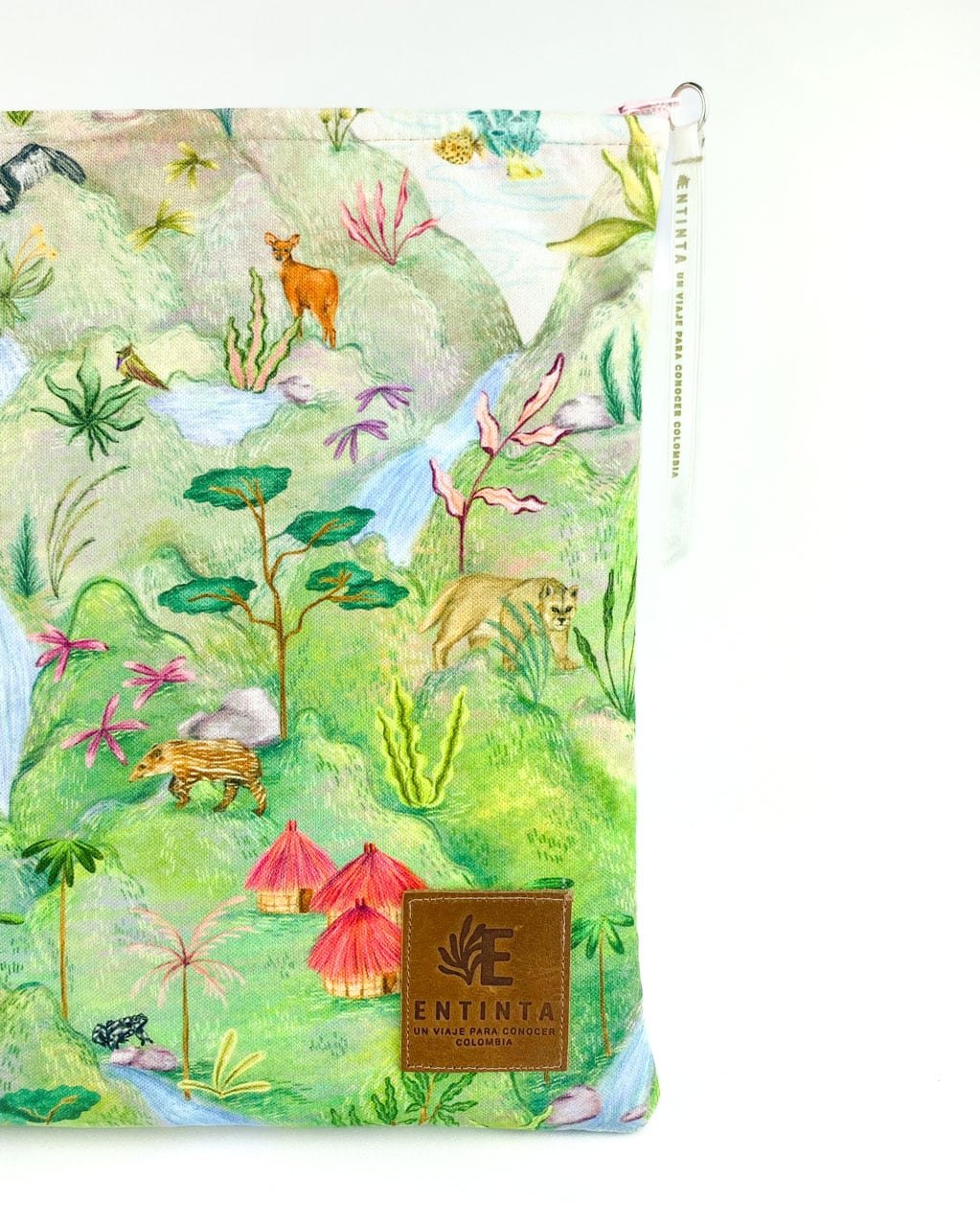 Estuches para Tablet 11” y Portátil 13” con nuestro estampado  La Sierra Nevada, un ecosistema de vidas en conexión – De agudas pendientes y abarcando todos los pisos térmicos, La Sierra es un espacio de intercambio de vitalidad. Un escenario natural único que nos pone en manifiesto que el convivir en reciprocidad es lo que garantiza la vida.”
