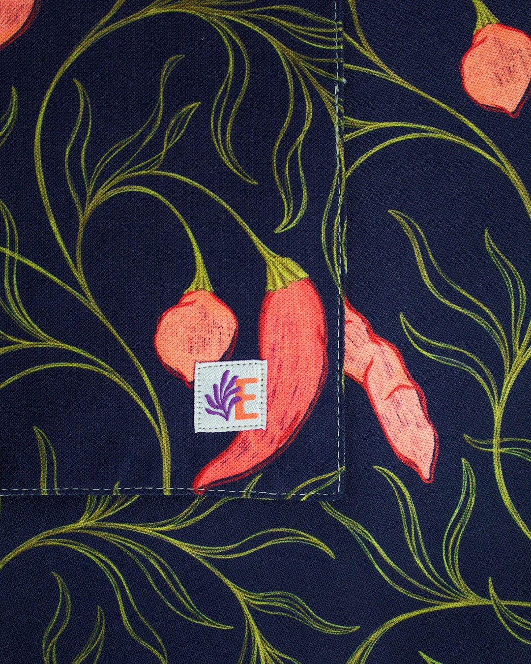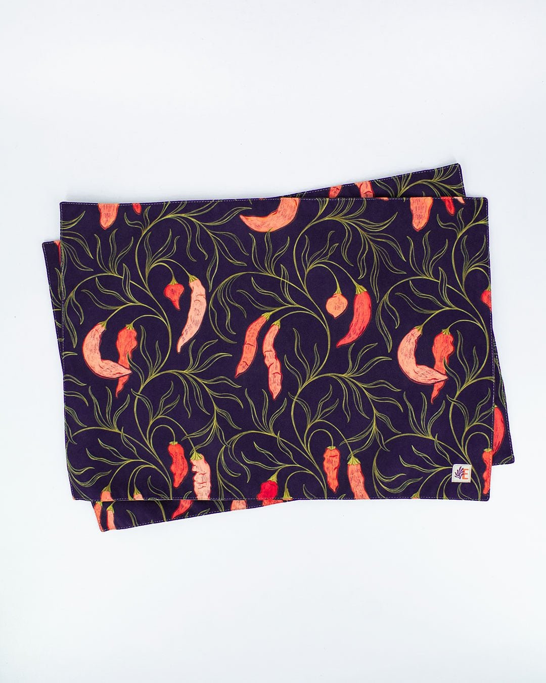 Individuales (2 unidades) con nuestro estampado “Ají, Alimento Espiritual – Sembrado en las chagras, un sistema de cultivo indígena, el ají es una planta sagrada que cumple un papel alimenticio y espiritual en las comunidades”.