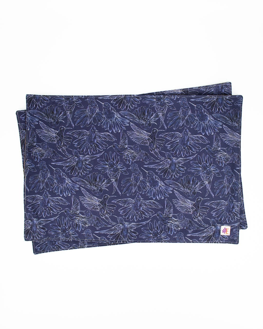 Individuales (2 unidades) con nuestro estampado “Colibríes, mensajeros del mundo natural y espiritual – Con sus alas desplegadas y plumajes vistosos los colibríes vuelan y bailan por La Sierra Nevada. Con sus cantos relatan los secretos de la montaña y propagan los mensajes de la naturaleza, pronosticando las lluvias y sequías, y anunciando los tiempos de siembra y cosecha.”