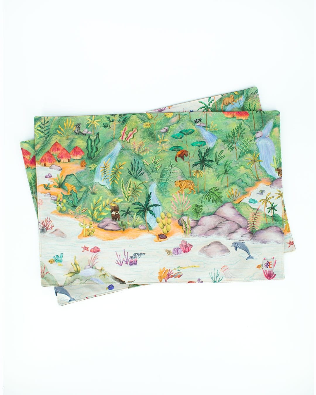 Individuales (2 unidades) con nuestro estampado La Sierra Nevada, un ecosistema de vidas en conexión – De agudas pendientes y abarcando todos los pisos térmicos, La Sierra es un espacio de intercambio de vitalidad. Un escenario natural único que nos pone en manifiesto que el convivir en reciprocidad es lo que garantiza la vida.”