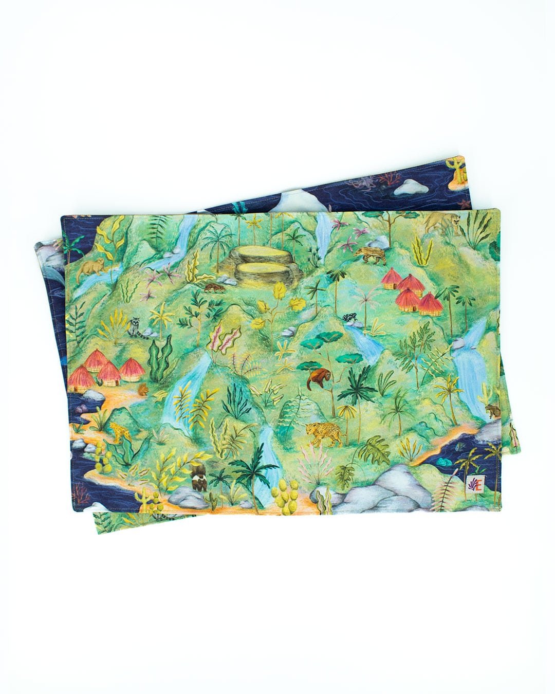 Individuales (2 unidades) con nuestro estampado La Sierra Nevada, un ecosistema de vidas en conexión – De agudas pendientes y abarcando todos los pisos térmicos, La Sierra es un espacio de intercambio de vitalidad. Un escenario natural único que nos pone en manifiesto que el convivir en reciprocidad es lo que garantiza la vida.”