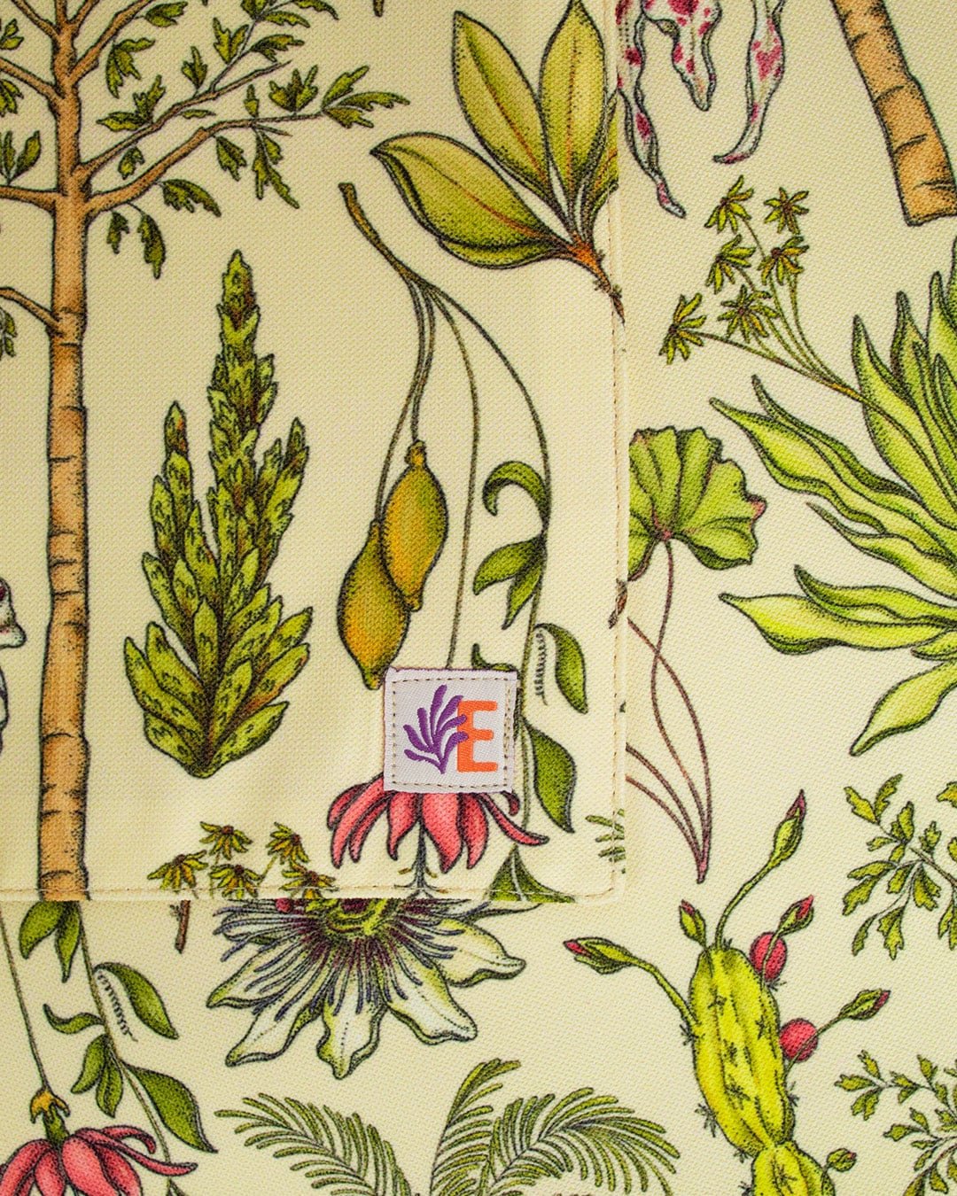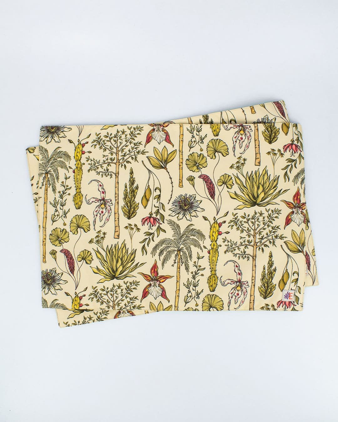 Individuales (2 unidades) con nuestro estampado “Vegetación de La Sierra, heterogénea, relacional y vital – Un panorama de colores, tamaños y formas que cambia cada paso hacia arriba. Desde el mar caribe hasta los picos nevados, a cada planta de La Sierra se le asignó una función ecológica y espiritual que cumplir en el tejido de la vida. Hay plantas medicinales, comestibles, de uso ceremonial, para construir y tinturar.”.