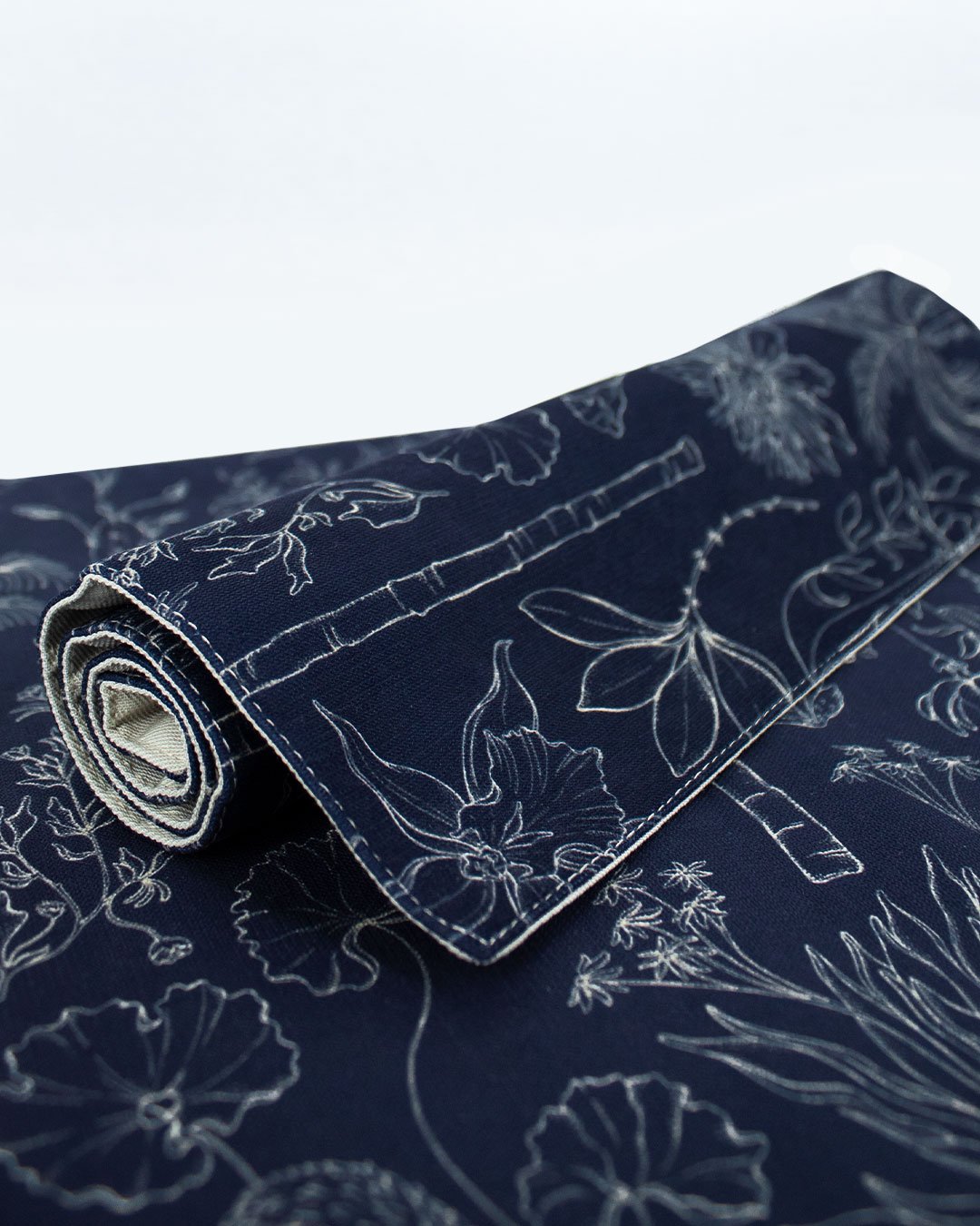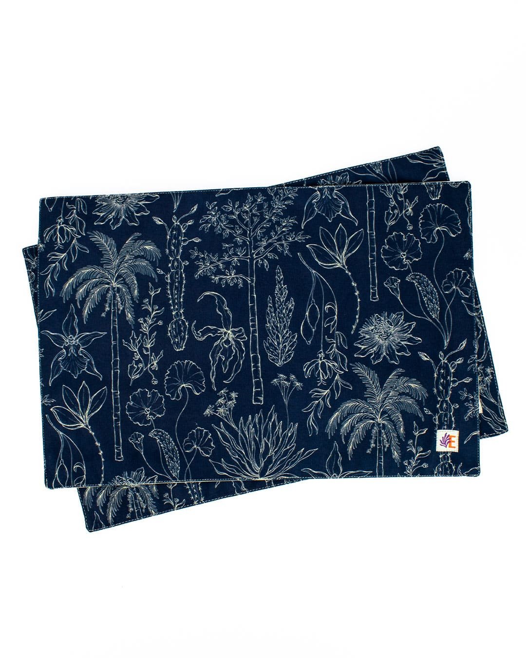 Individuales (2 unidades) con nuestro estampado “Vegetación de La Sierra, heterogénea, relacional y vital – Un panorama de colores, tamaños y formas que cambia cada paso hacia arriba. Desde el mar caribe hasta los picos nevados, a cada planta de La Sierra se le asignó una función ecológica y espiritual que cumplir en el tejido de la vida. Hay plantas medicinales, comestibles, de uso ceremonial, para construir y tinturar.”.