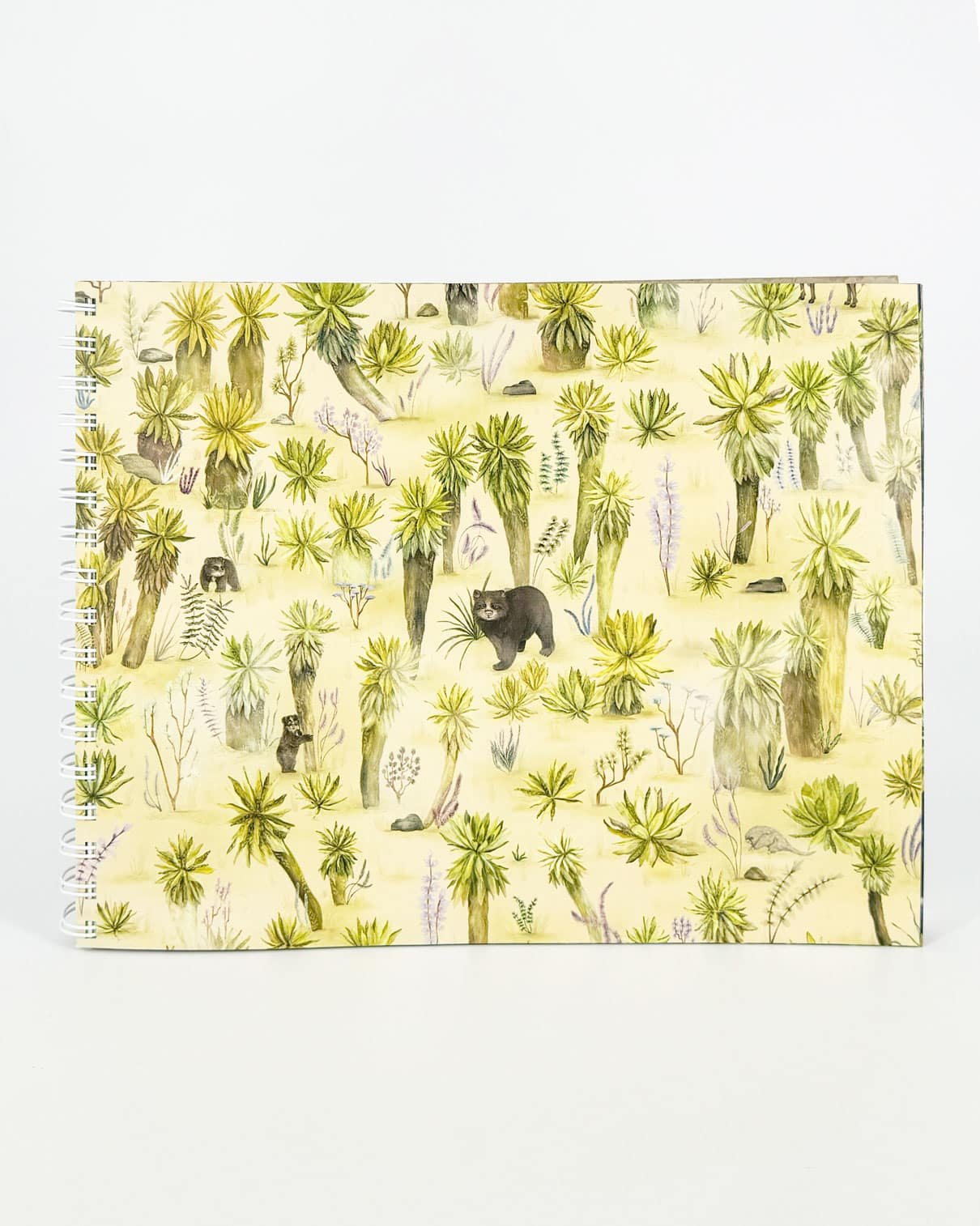 Libreta de dibujo tamaño carta con nuestro estampado “El Páramo de los Andes Nariñenses – En la inmensidad de estas tierras frías, las nubes se funden con las montañas, creando un ecosistema mágico, envuelto en misterio, quietud y neblina. Hogar de frailejones, pajonales y fauna, que ocultos tras la bruma, cuidan y protegen el agua.”