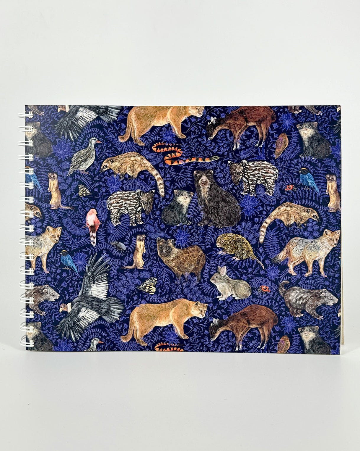 Libreta de dibujo tamaño carta con nuestro estampado “Fauna Silvestre en las Montañas de Fuego – Seres de la naturaleza que habitan y protegen las montañas de Nariño. Cobijados por la fuerza de la montaña accionan en conjunto por el bienestar de la tierra y la red de vida que conforma el territorio.”