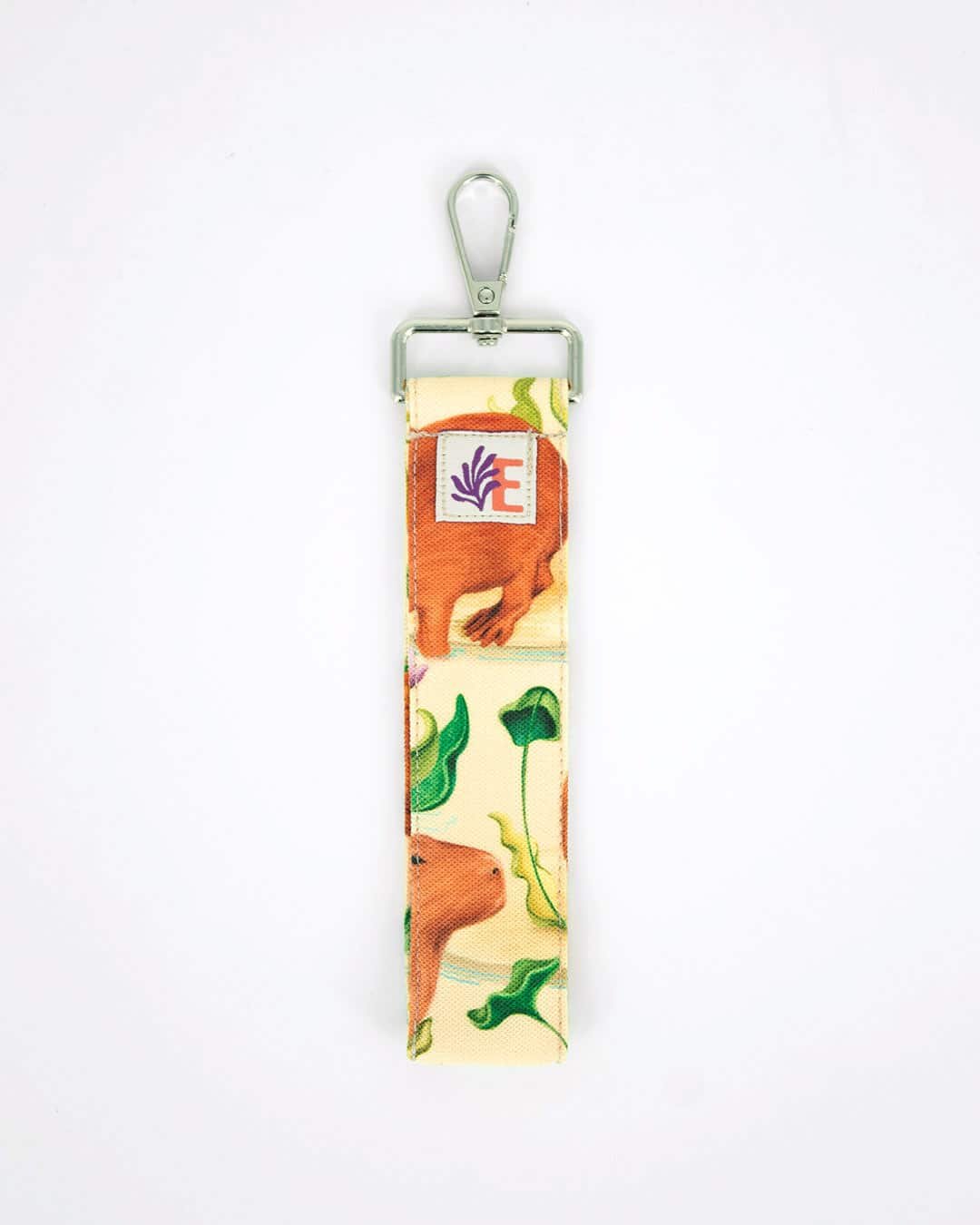 Llavero con nuestro estampado Esteros y Chigüiros, Paisaje Vivo – Los esteros, mantos de agua en medio de las praderas del llano. Un ecosistema vivo y diverso en el que habitan manadas de chigüiros que disfrutan de los lodazales y plantas del entorno”.
