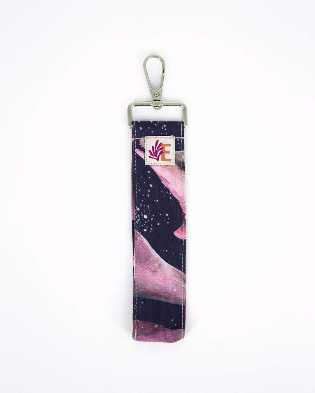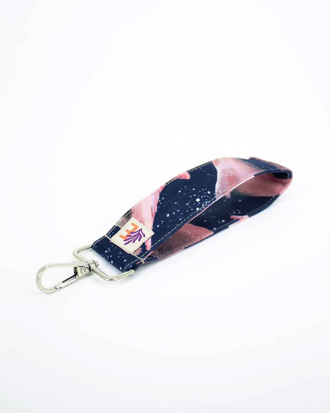 Llavero con nuestro estampado “Las Toninas, Delfines de Río ­– Transitando por el río aparecen las toninas, que destacan entre la naturaleza de la selva por sus tonalidades rosas y grisáceas”.