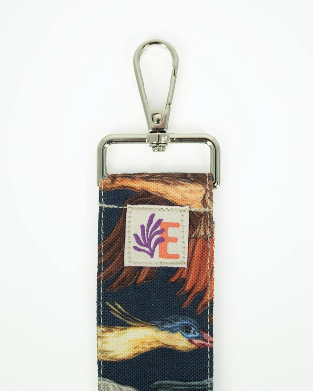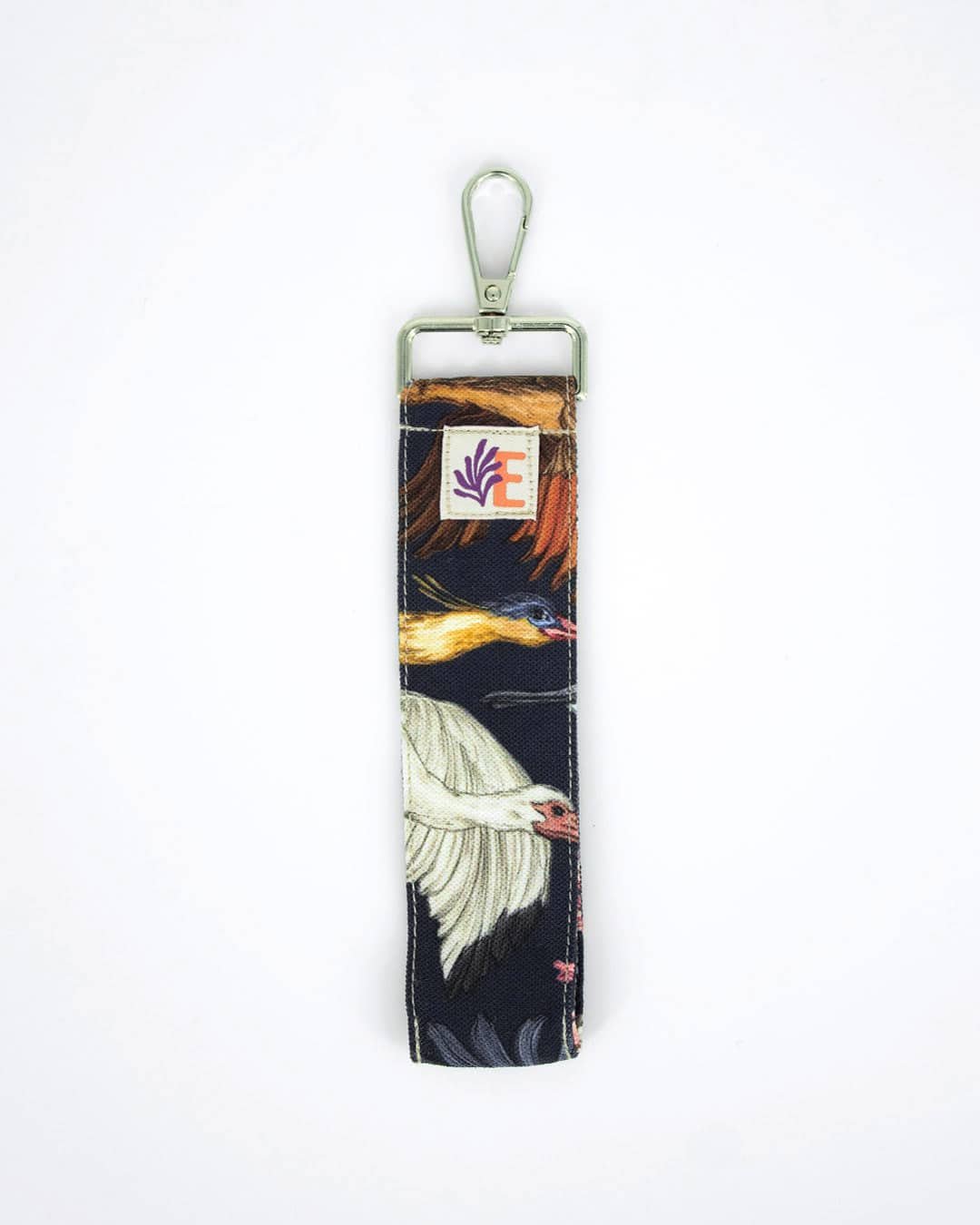 Llavero con nuestro estampado “Tierra de Aves, Diversidad de Vida y Color – Bandas de aves florecen el cielo de tonos infinitos con sus vistosos plumajes. Un espectáculo natural de color y diversidad que hace parte de la vida, cantos y cuentos del llano”.
