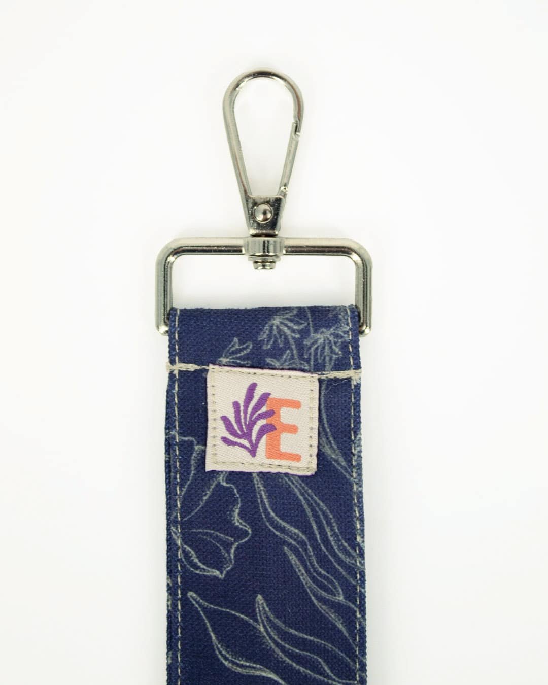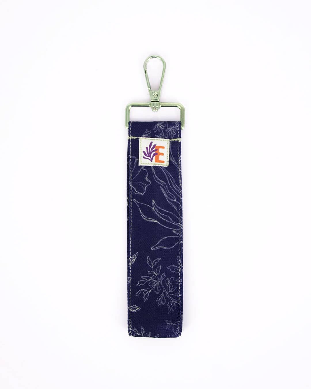 Llavero con nuestro estampado “Vegetación de La Sierra, heterogénea, relacional y vital – Un panorama de colores, tamaños y formas que cambia cada paso hacia arriba. Desde el mar caribe hasta los picos nevados, a cada planta de La Sierra se le asignó una función ecológica y espiritual que cumplir en el tejido de la vida. Hay plantas medicinales, comestibles, de uso ceremonial, para construir y tinturar.”.