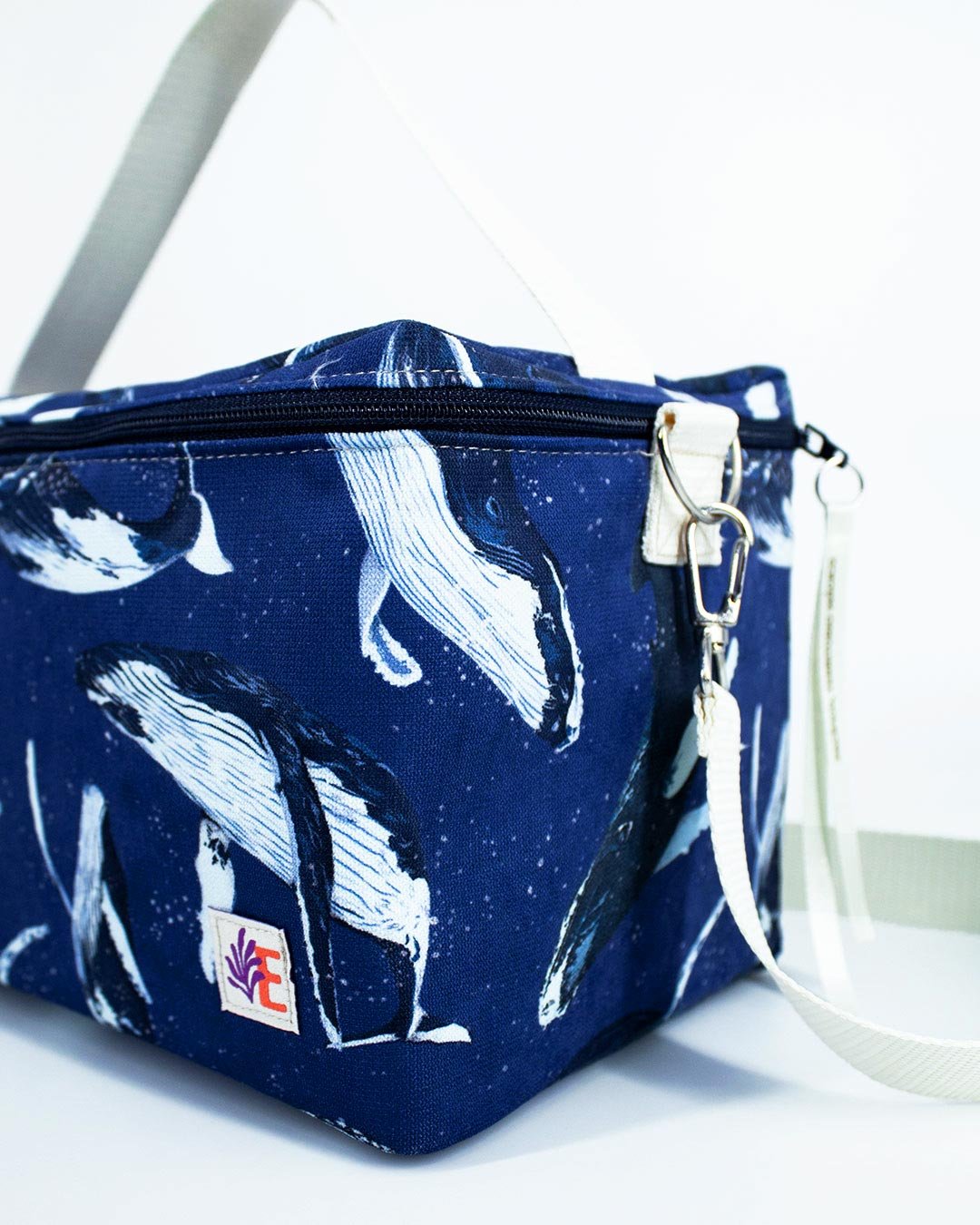 Lonchera con nuestro estampado “Danza Marina – Las ballenas yubarta, un espectáculo natural en medio del mar y la selva”.