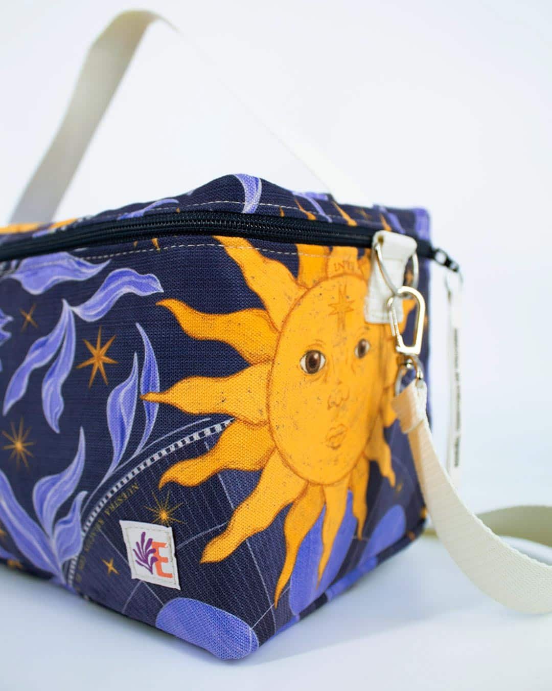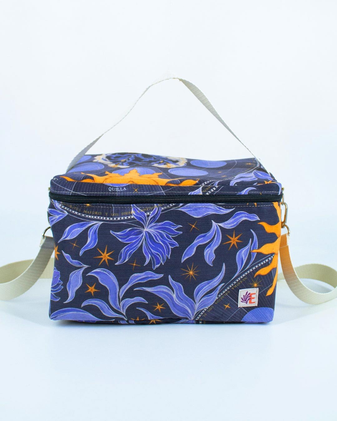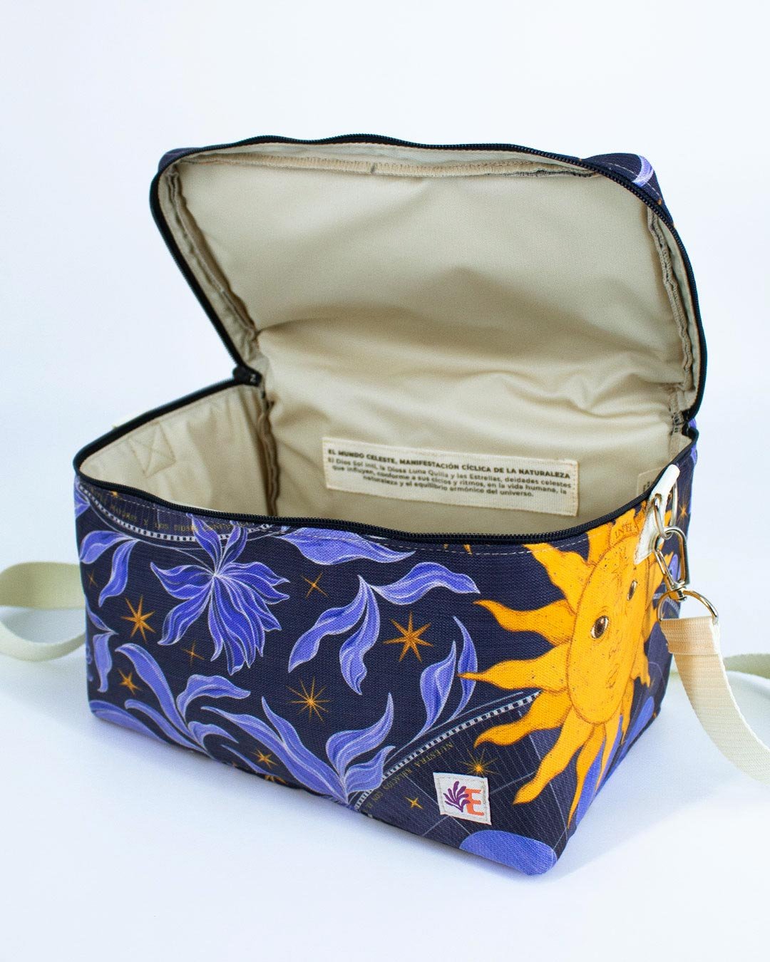 Lonchera con nuestro estampado “El Mundo Celeste, manifestación cíclica de la naturaleza – El Dios Sol Inti, la Diosa Luna Quilla y las Estrellas, deidades celestes que influyen, conforme a sus ciclos y ritmos, en la vida humana, la naturaleza y el equilibrio armónico del universo.”