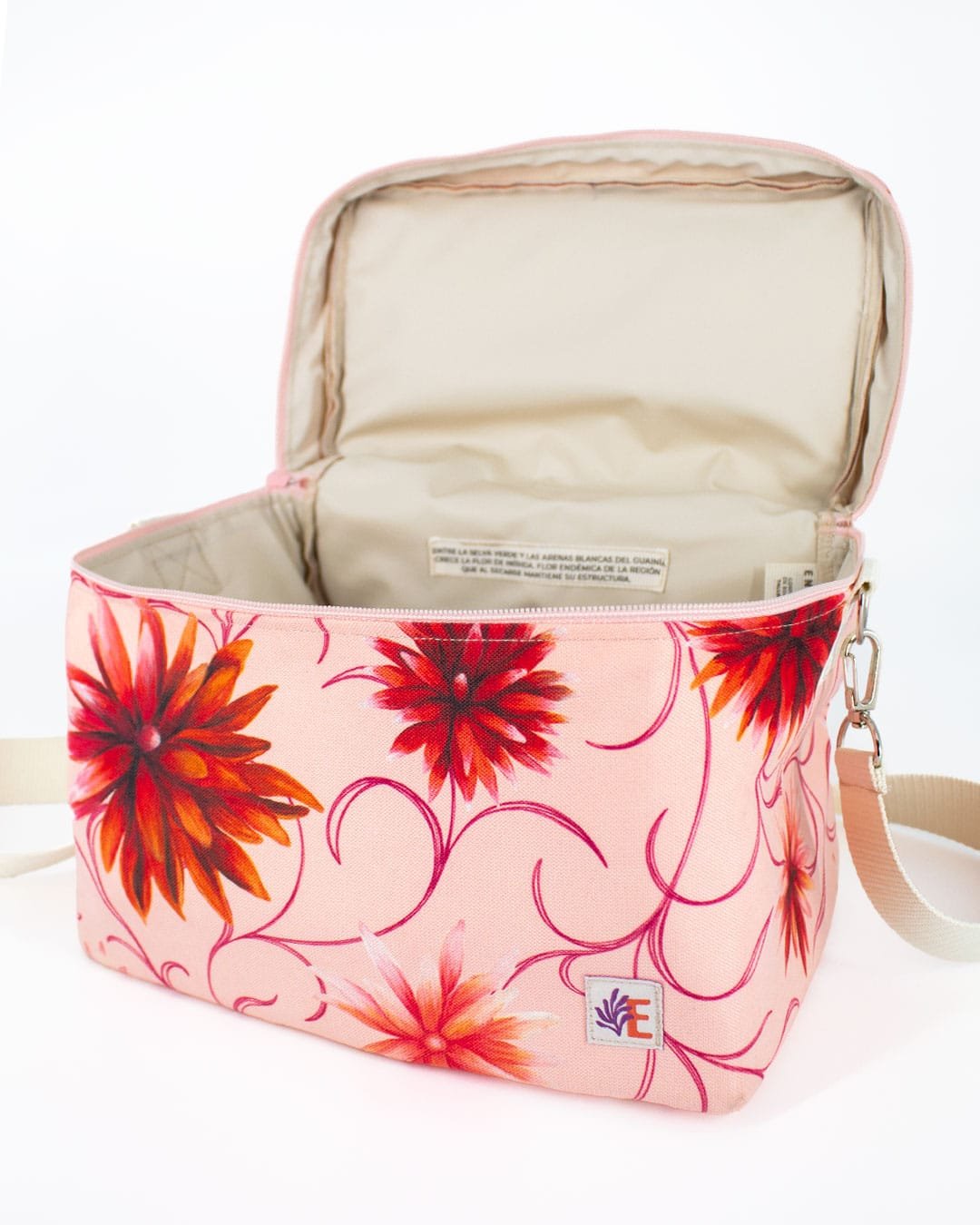 Lonchera con nuestro estampado “La Eterna Flor de Inírida – Entre la selva verde y las arenas blancas del Guainía crece la Flor de Inírida. Flor endémica de la región que al secarse mantiene su estructura”.