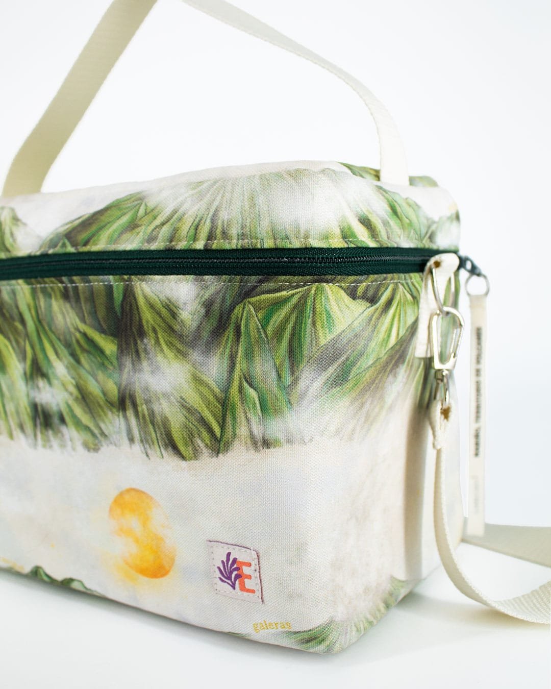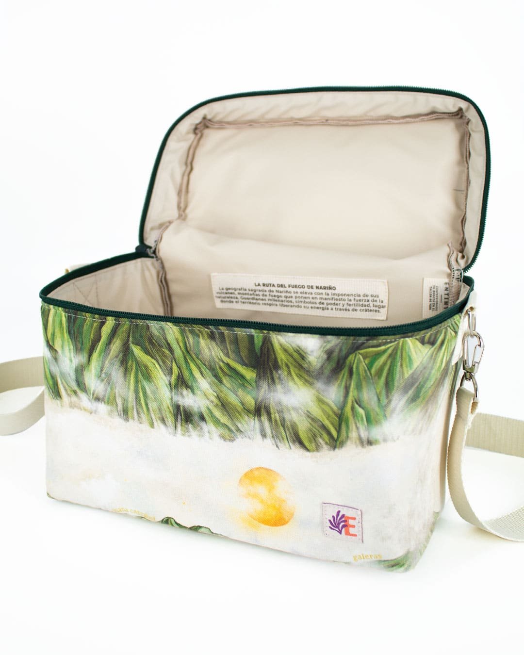 Lonchera con nuestro estampado La Ruta del Fuego de Nariño La geografía sagrada de Nariño se eleva con la imponencia de sus volcanes, montañas de fuego que ponen en manifiesto la fuerza de la naturaleza. Guardianes milenarios, símbolos de poder y fertilidad, lugar donde el territorio respira liberando su energía a través de cráteres.
