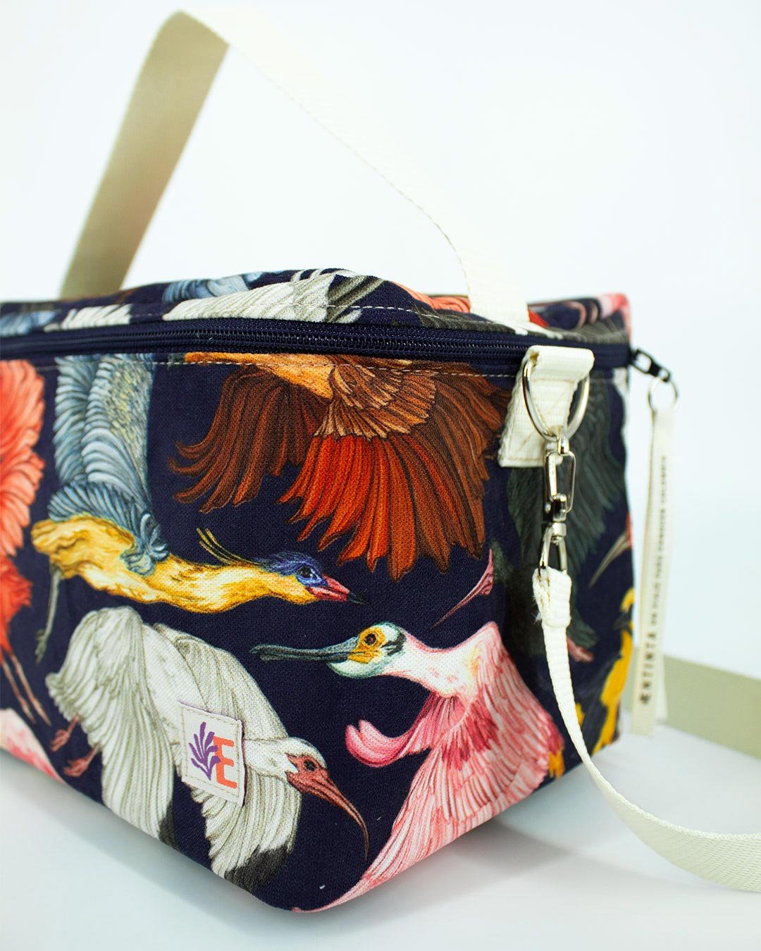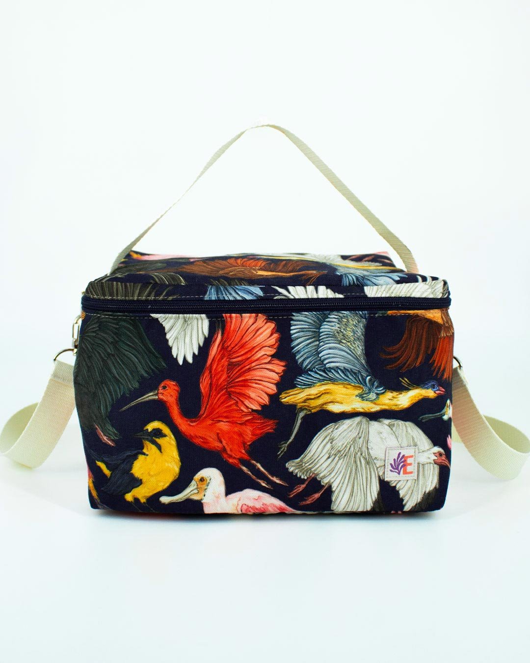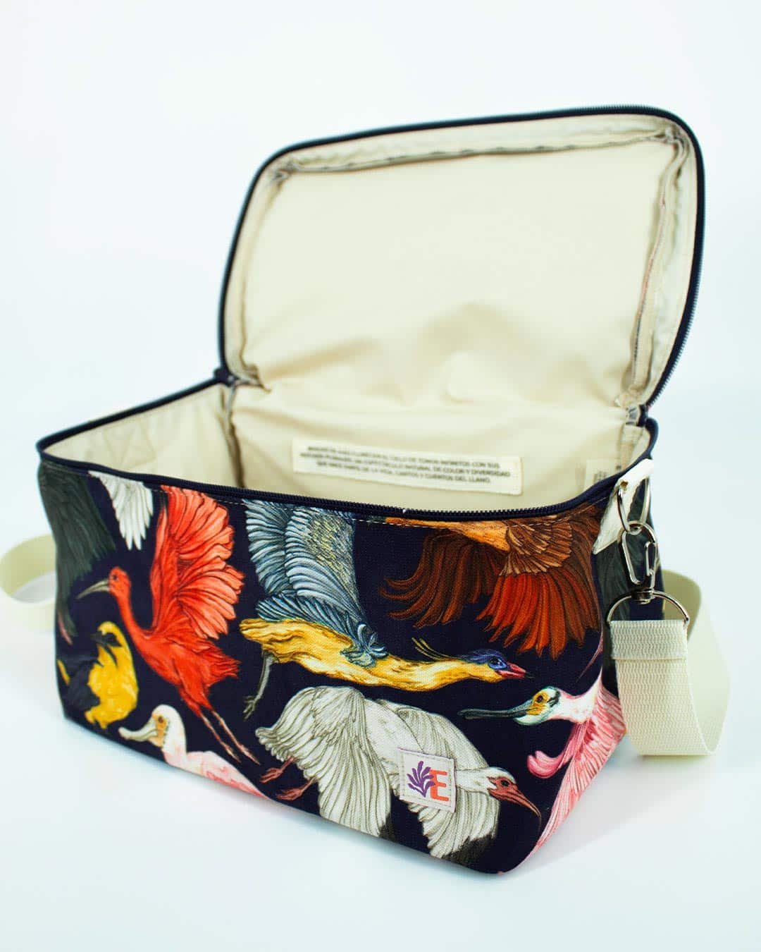 Lonchera con nuestro estampado “Tierra de Aves, Diversidad de Vida y Color – Bandas de aves florecen el cielo de tonos infinitos con sus vistosos plumajes. Un espectáculo natural de color y diversidad que hace parte de la vida, cantos y cuentos del llano”.