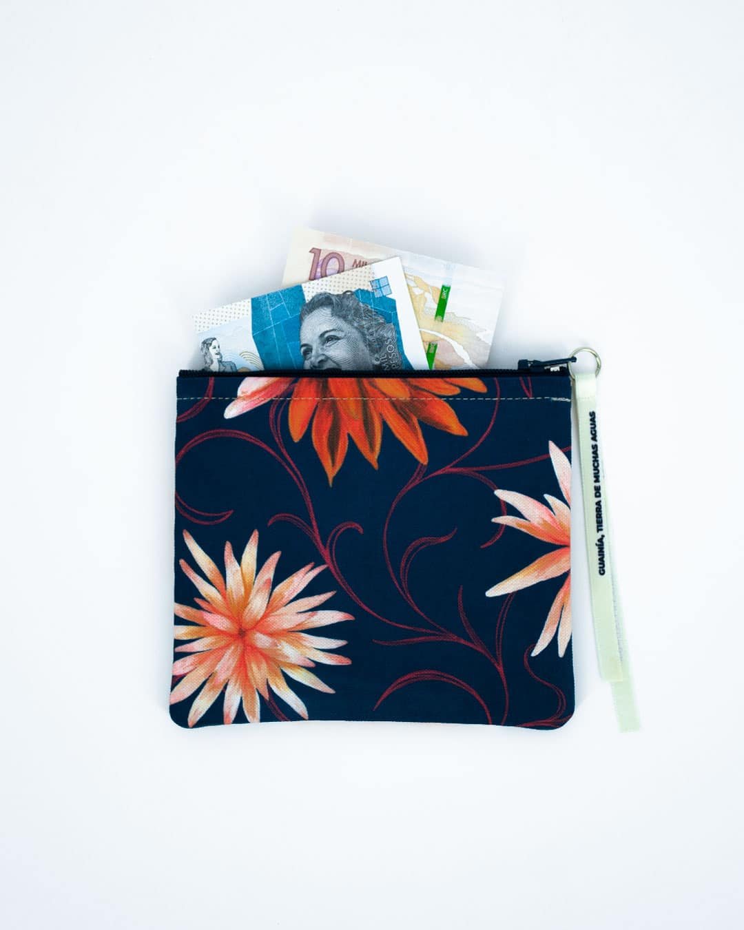 Monedero con nuestro estampado “La Eterna Flor de Inírida – Entre la selva verde y las arenas blancas del Guainía crece la Flor de Inírida. Flor endémica de la región que al secarse mantiene su estructura”.