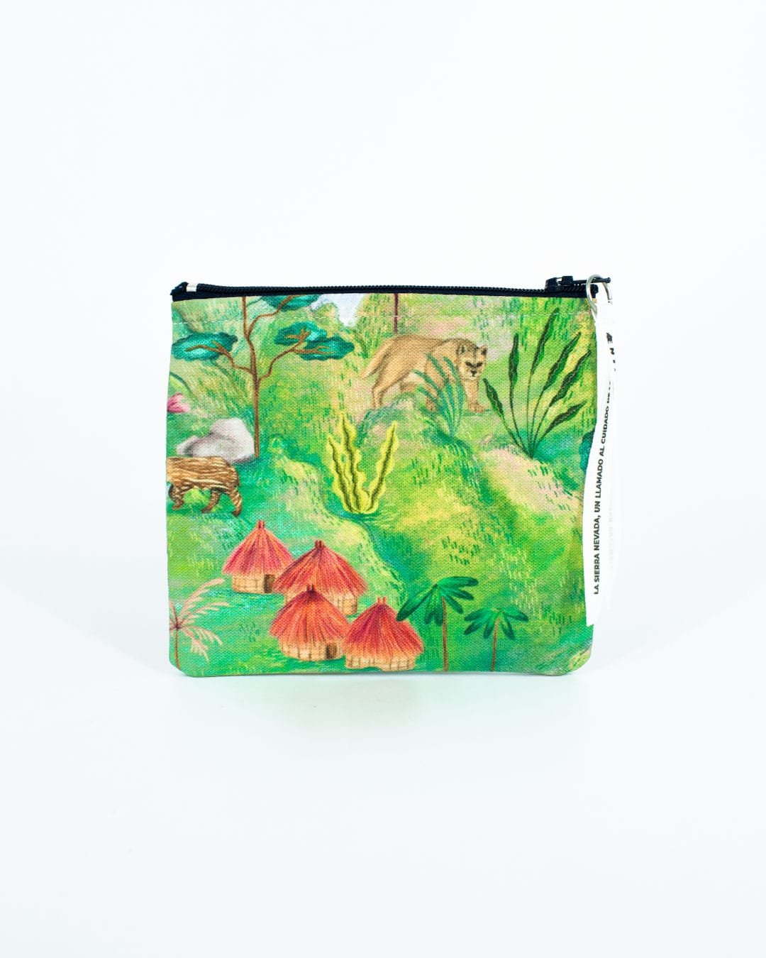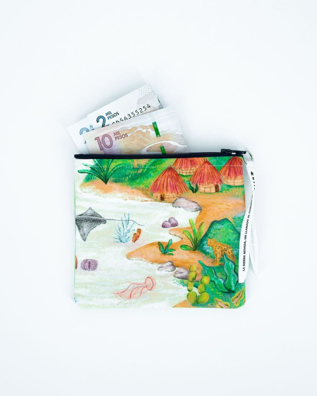 Monedero con nuestro estampado La Sierra Nevada, un ecosistema de vidas en conexión – De agudas pendientes y abarcando todos los pisos térmicos, La Sierra es un espacio de intercambio de vitalidad. Un escenario natural único que nos pone en manifiesto que el convivir en reciprocidad es lo que garantiza la vida.”