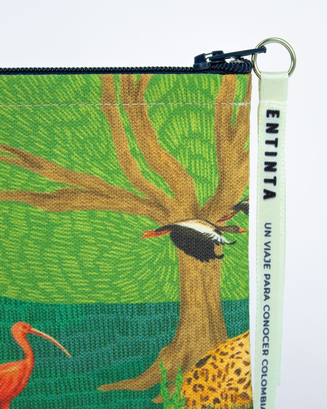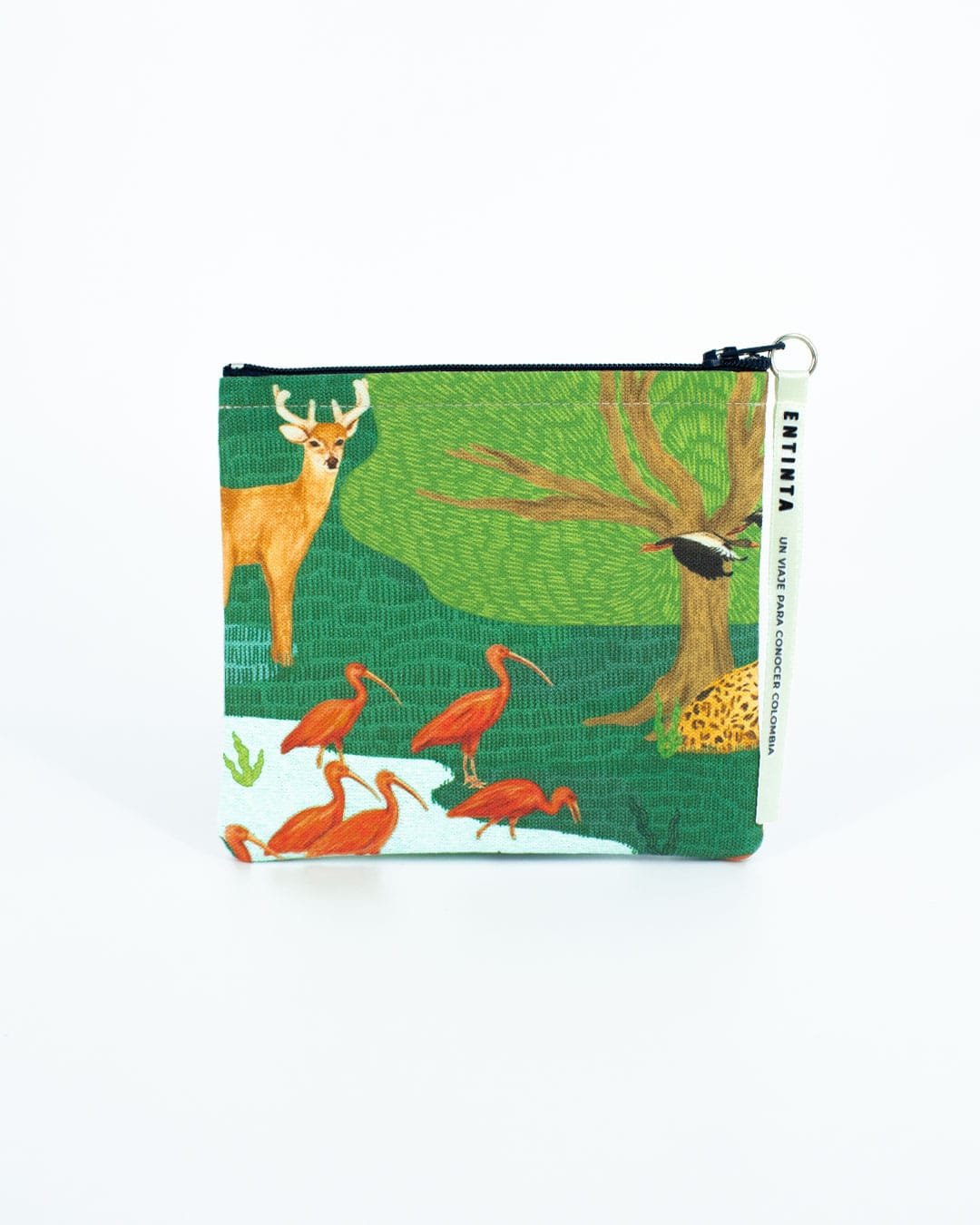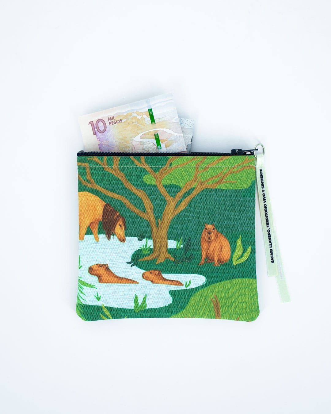 Monedero con nuestro estampado “Los Hatos, Paraísos de Vida ­– Internándose en las sabanas, el llanero a caballo recorre el Hato, una tierra que cuida y ama. Un ecosistema natural y cultural donde todos sus seres vivos coexisten de forma mutuamente enriquecedora”.