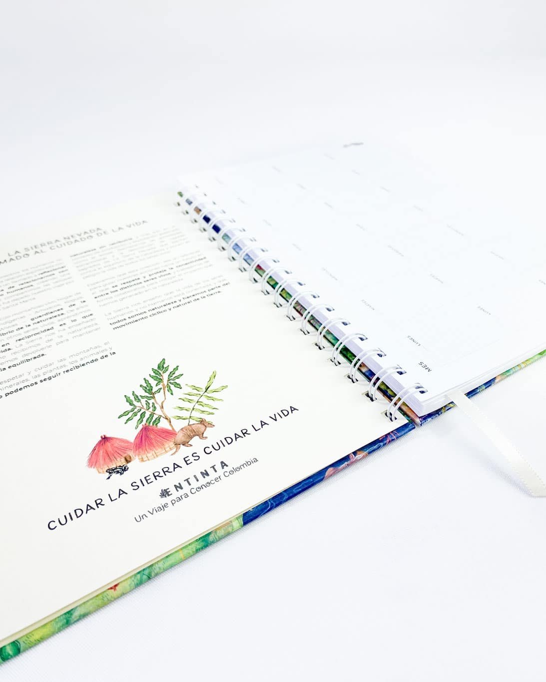 Planeador anual con nuestro estampado  La Sierra Nevada, un ecosistema de vidas en conexión – De agudas pendientes y abarcando todos los pisos térmicos, La Sierra es un espacio de intercambio de vitalidad. Un escenario natural único que nos pone en manifiesto que el convivir en reciprocidad es lo que garantiza la vida.”
