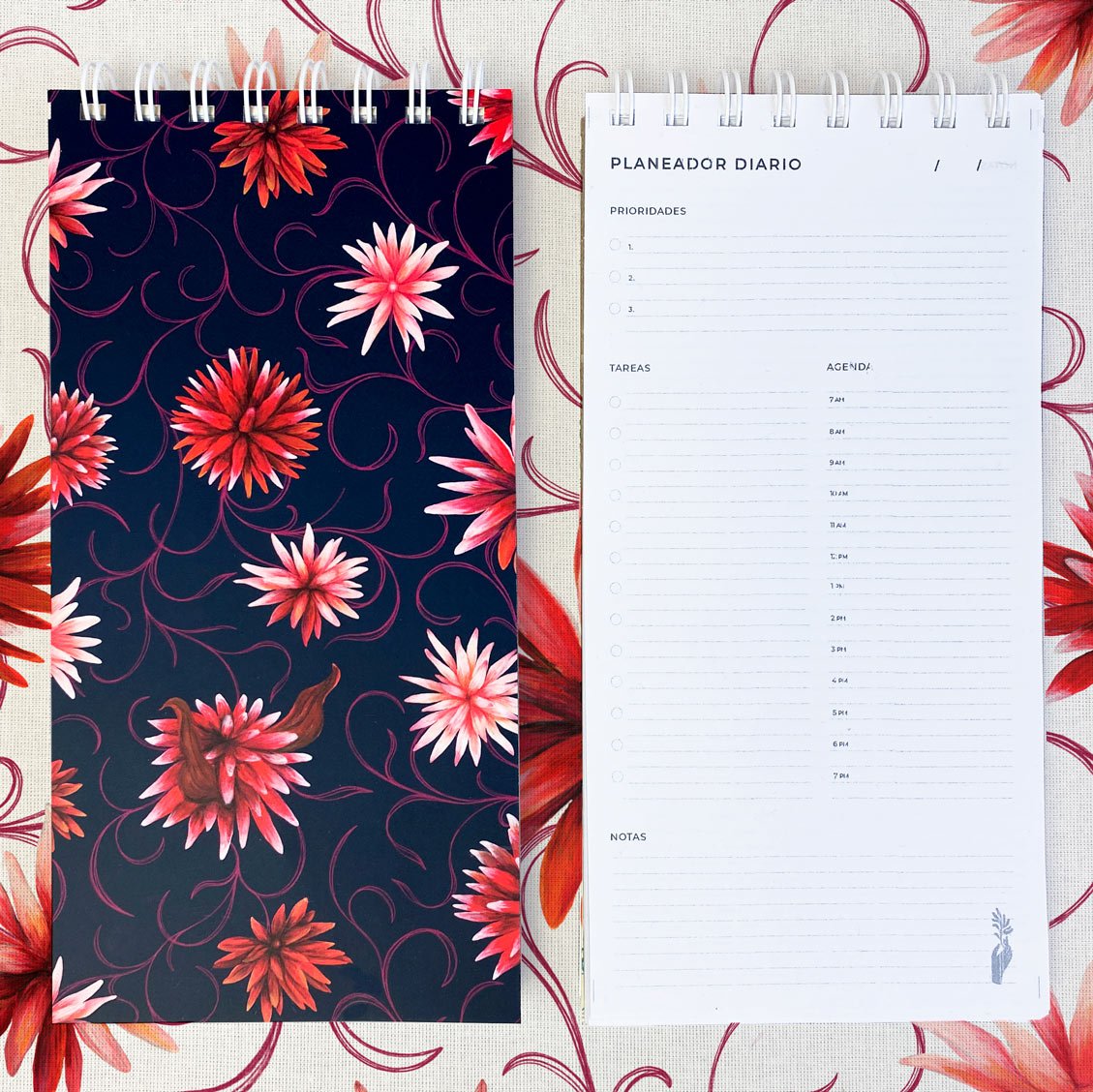 Planeador diario con nuestro estampado “La Eterna Flor de Inírida – Entre la selva verde y las arenas blancas del Guainía crece la Flor de Inírida. Flor endémica de la región que al secarse mantiene su estructura”.