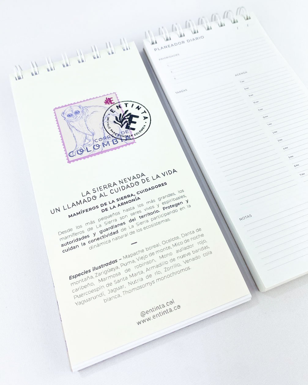 Planeador diario con nuestro estampado “Hogar del Jaguar, Naturaleza Salvaje ­–Guardian y protector de la naturaleza inmensa y salvaje, camina el jaguar libre por las infinitas sabanas del llano. Un hábitat donde convive con otros animales, manteniendo el equilibrio y dinámica natural del ecosistema”.