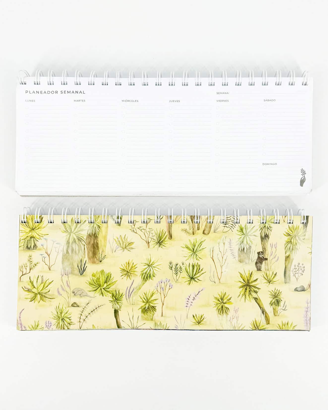 Planeador semanal con nuestro estampado “El Páramo de los Andes Nariñenses – En la inmensidad de estas tierras frías, las nubes se funden con las montañas, creando un ecosistema mágico, envuelto en misterio, quietud y neblina. Hogar de frailejones, pajonales y fauna, que ocultos tras la bruma, cuidan y protegen el agua.”