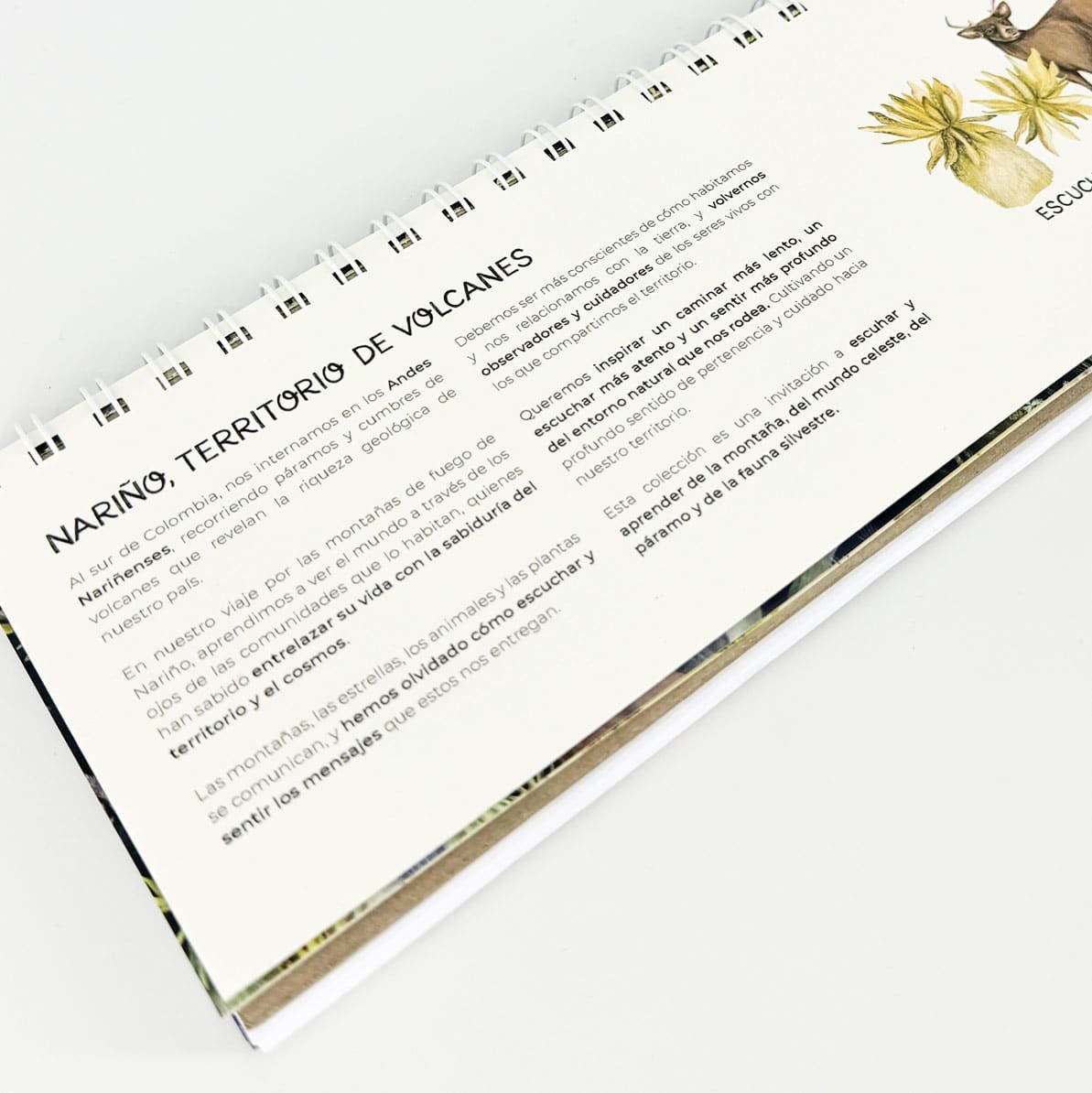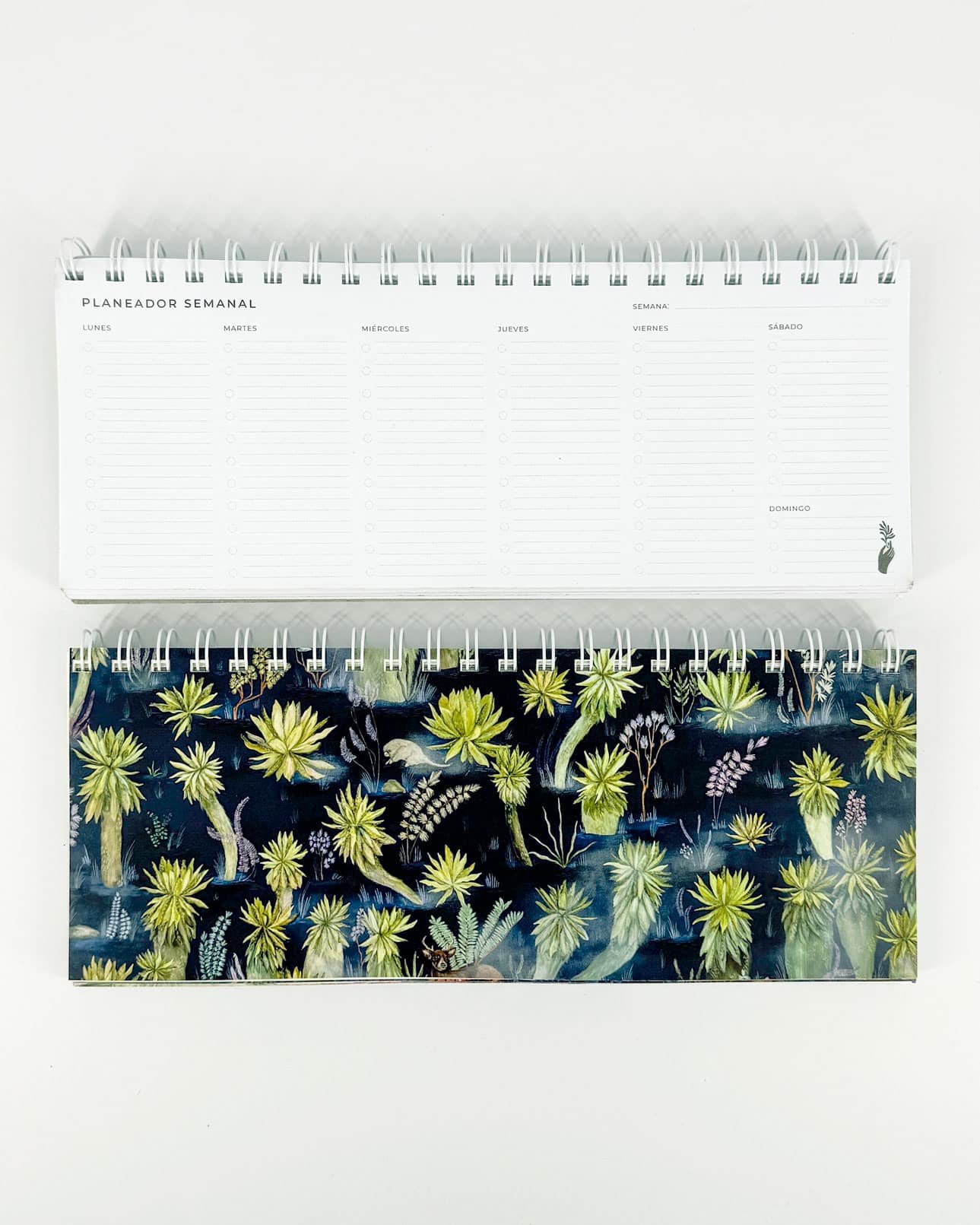 Planeador semanal con nuestro estampado “El Páramo de los Andes Nariñenses – En la inmensidad de estas tierras frías, las nubes se funden con las montañas, creando un ecosistema mágico, envuelto en misterio, quietud y neblina. Hogar de frailejones, pajonales y fauna, que ocultos tras la bruma, cuidan y protegen el agua.”