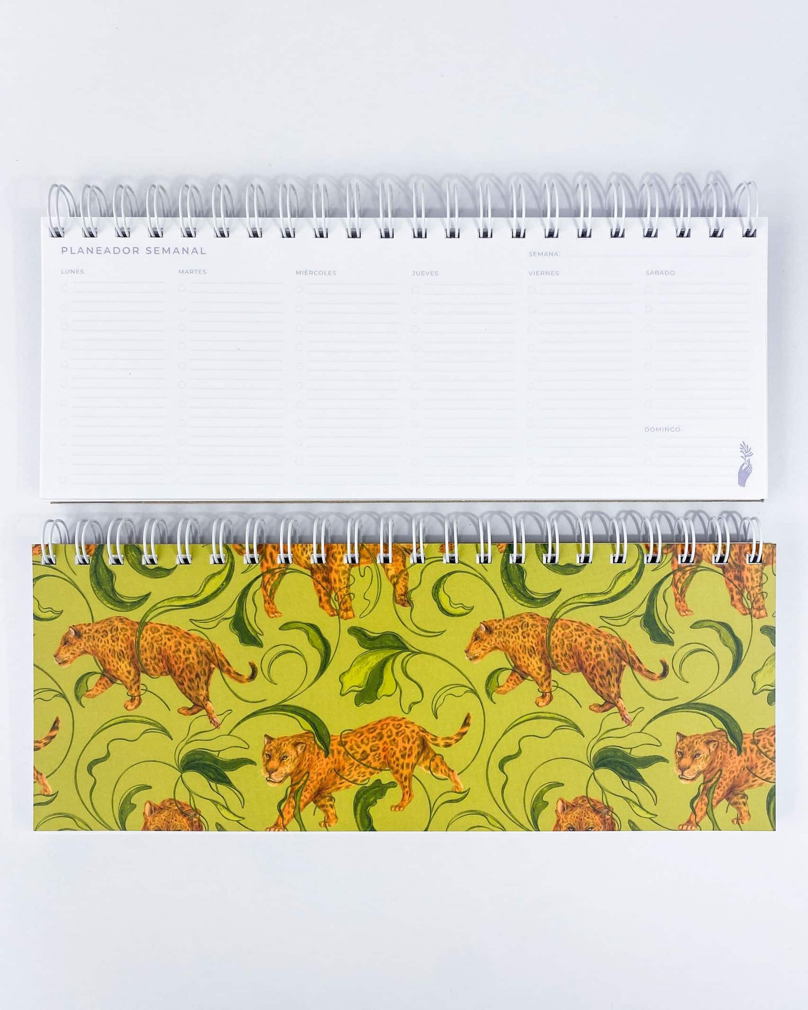 Planeador semanal con nuestro estampado “Hogar del Jaguar, Naturaleza Salvaje –Guardian y protector de la naturaleza inmensa y salvaje, camina el jaguar libre por las infinitas sabanas del llano. Un hábitat donde convive con otros animales, manteniendo el equilibrio y dinámica natural del ecosistema”.