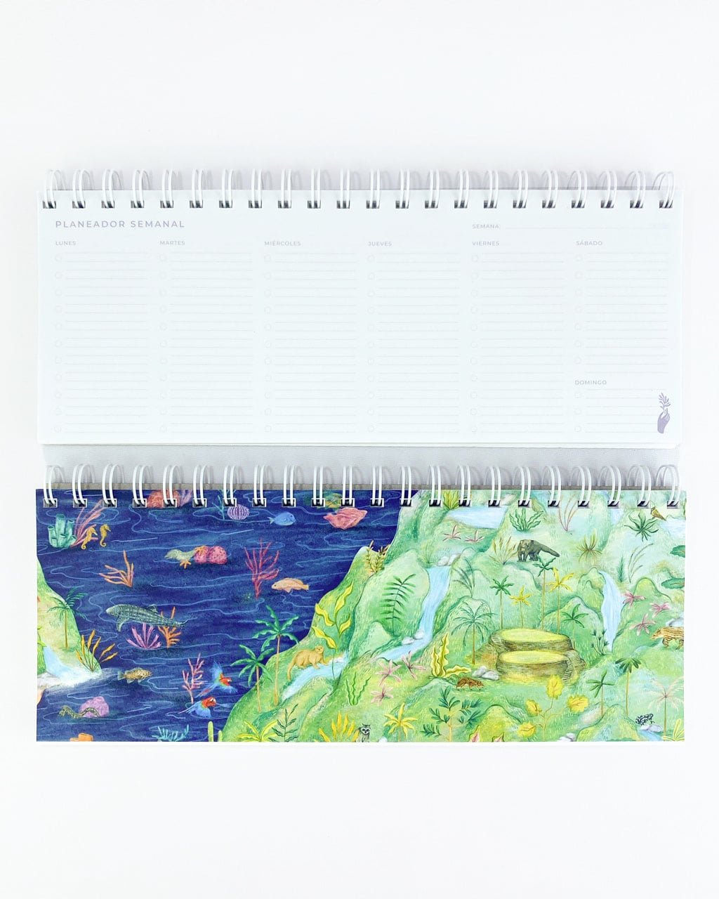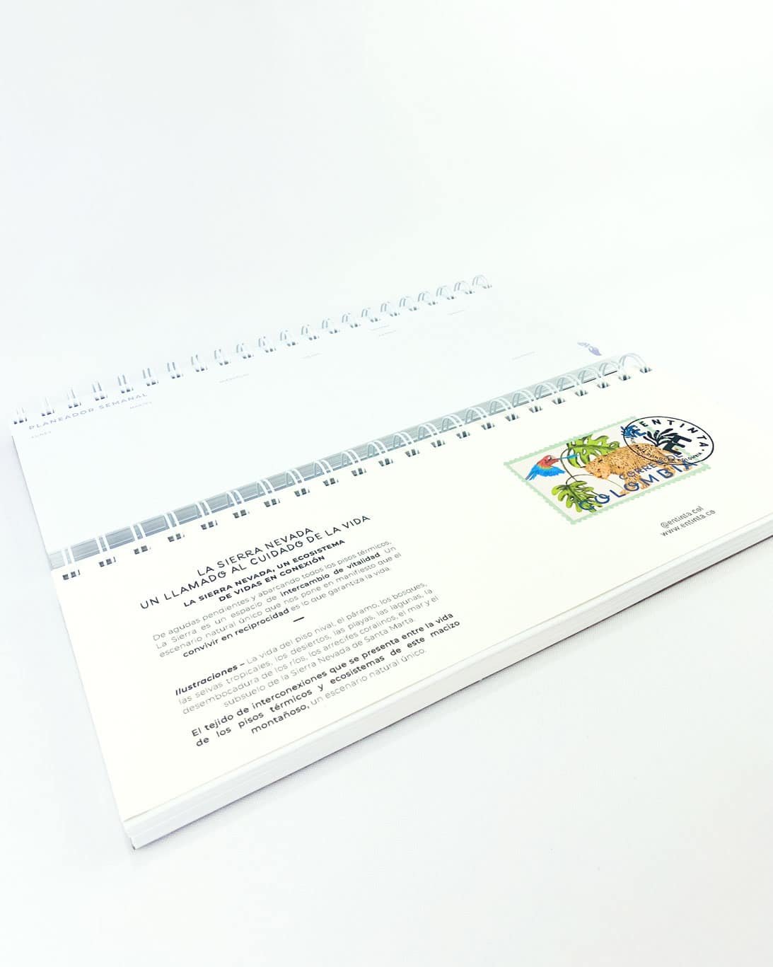 Planeador semanal con nuestro estampado  La Sierra Nevada, un ecosistema de vidas en conexión – De agudas pendientes y abarcando todos los pisos térmicos, La Sierra es un espacio de intercambio de vitalidad. Un escenario natural único que nos pone en manifiesto que el convivir en reciprocidad es lo que garantiza la vida.”