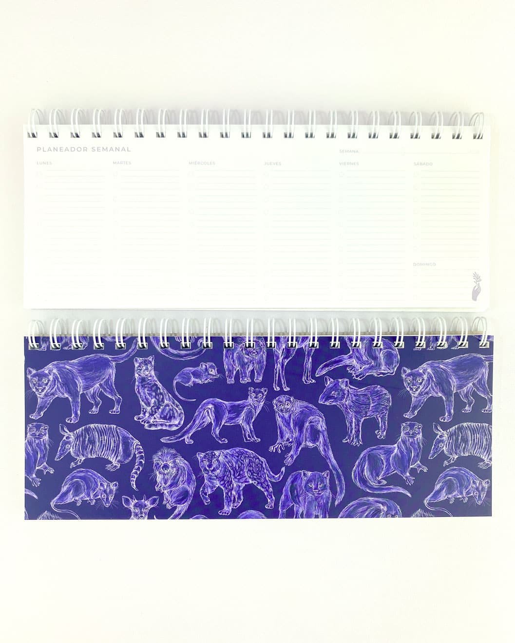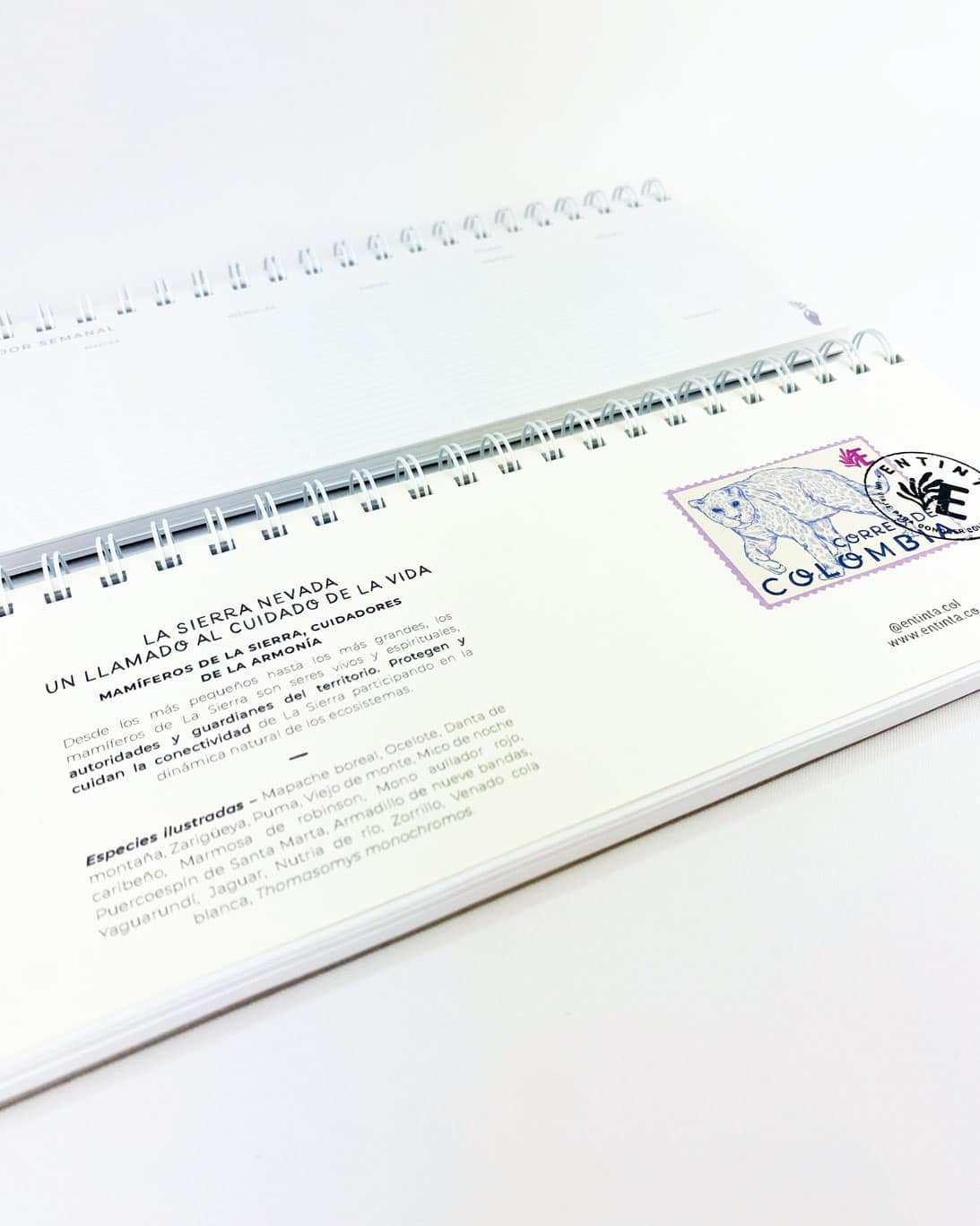 Planeador semanal con nuestro estampado “Mamíferos de La Sierra, cuidadores de la armonía – Desde los más pequeños hasta los más grandes, los mamíferos de La Sierra son seres vivos y espirituales, autoridades y guardianes del territorio. Protegen y cuidan la conectividad de La Sierra participando en la dinámica natural de los ecosistemas.”.