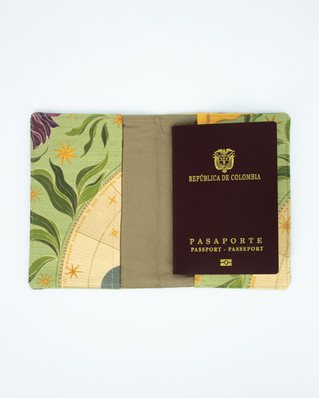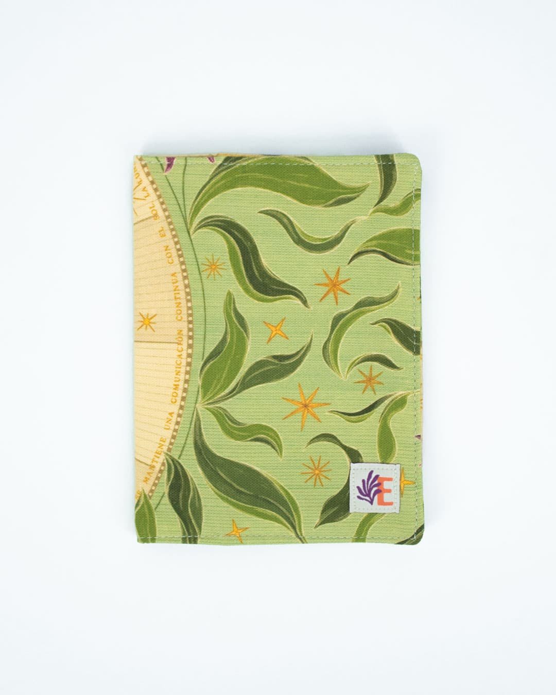 Porta pasaporte con nuestro estampadoEl Mundo Celeste, manifestación cíclica de la naturaleza – El Dios Sol Inti, la Diosa Luna Quilla y las Estrellas, deidades celestes que influyen, conforme a sus ciclos y ritmos, en la vida humana, la naturaleza y el equilibrio armónico del universo.
