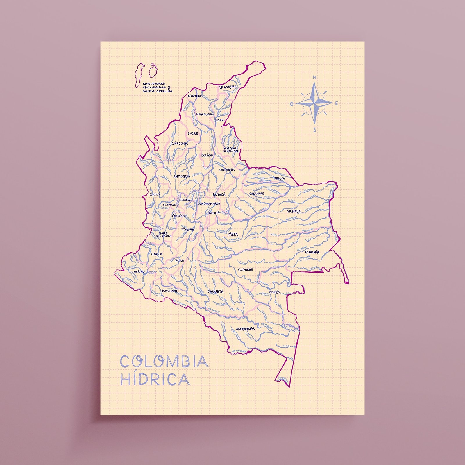 Póster con ilustración de los ríos de Colombia, una pieza que celebra la riqueza hídrica del país