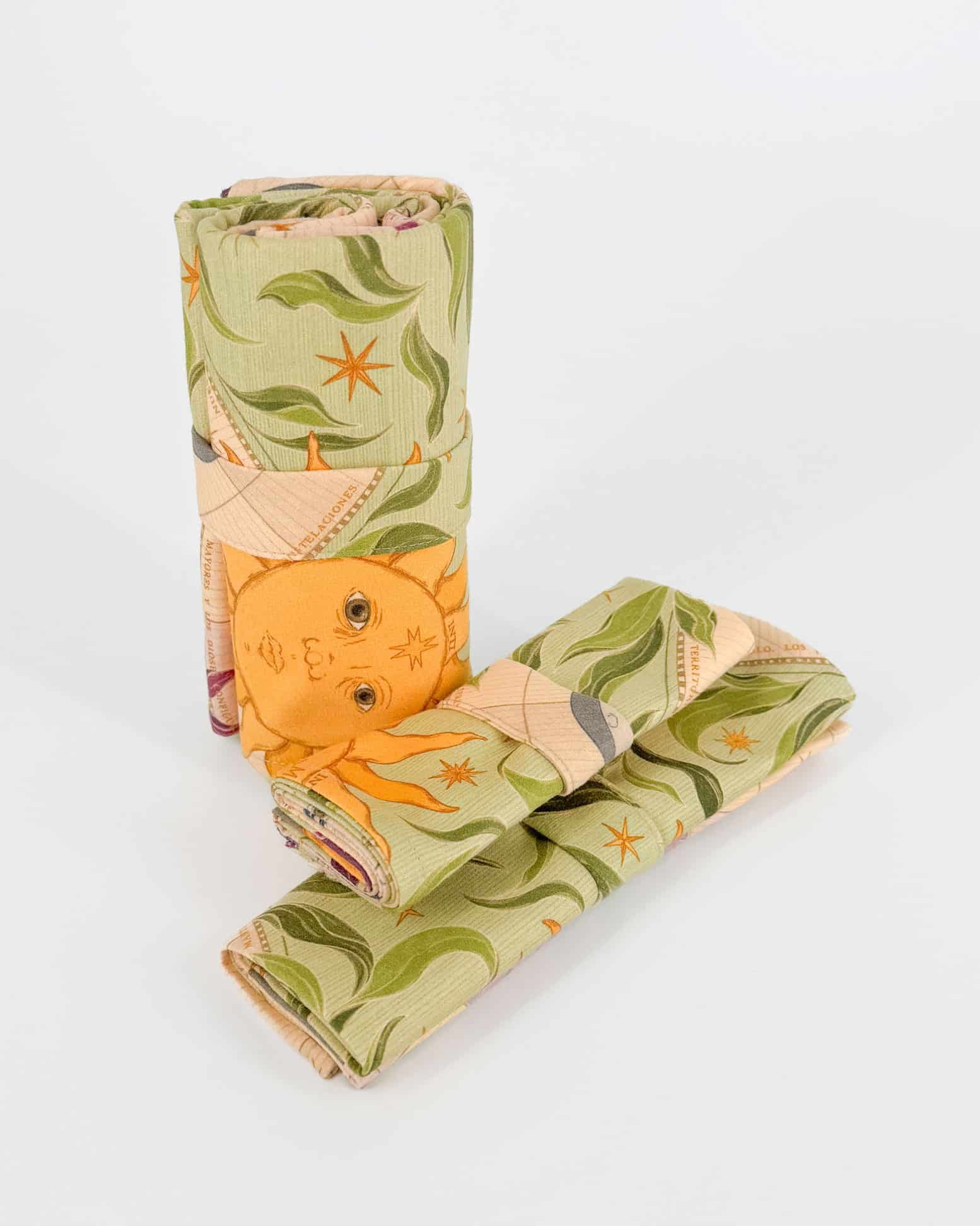 Vienen con nuestro estampado “El Mundo Celeste, manifestación cíclica de la naturaleza – El Dios Sol Inti, la Diosa Luna Quilla y las Estrellas, deidades celestes que influyen, conforme a sus ciclos y ritmos, en la vida humana, la naturaleza y el equilibrio armónico del universo.”