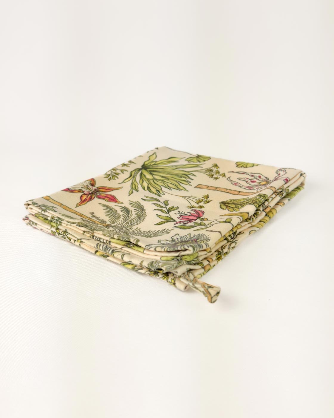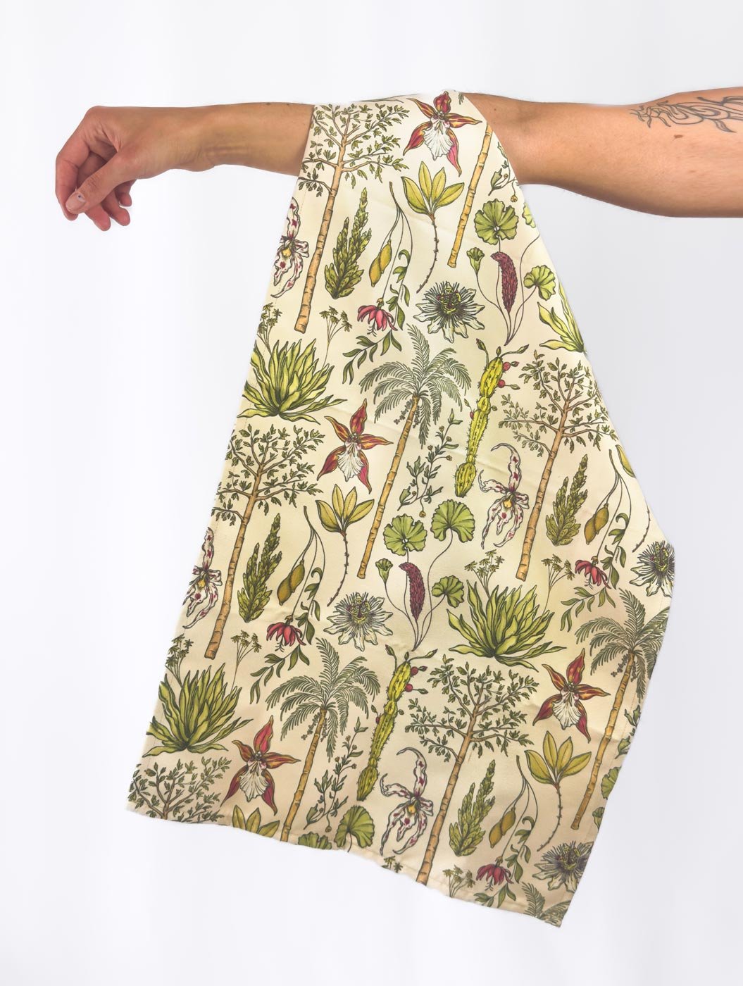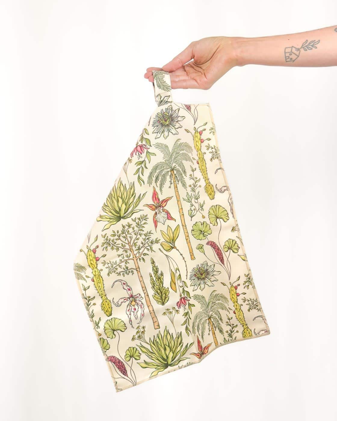 Vienen con nuestro estampado “Vegetación de La Sierra, heterogénea, relacional y vital – Un panorama de colores, tamaños y formas que cambia cada paso hacia arriba. Desde el mar caribe hasta los picos nevados, a cada planta de La Sierra se le asignó una función ecológica y espiritual que cumplir en el tejido de la vida. Hay plantas medicinales, comestibles, de uso ceremonial, para construir y tinturar.”. Un diseño inspirado en nuestro viaje a Ciudad Perdida en el departamento de Magdalena para la colección La Sierra Nevada, un llamado al cuidado de la Vida.