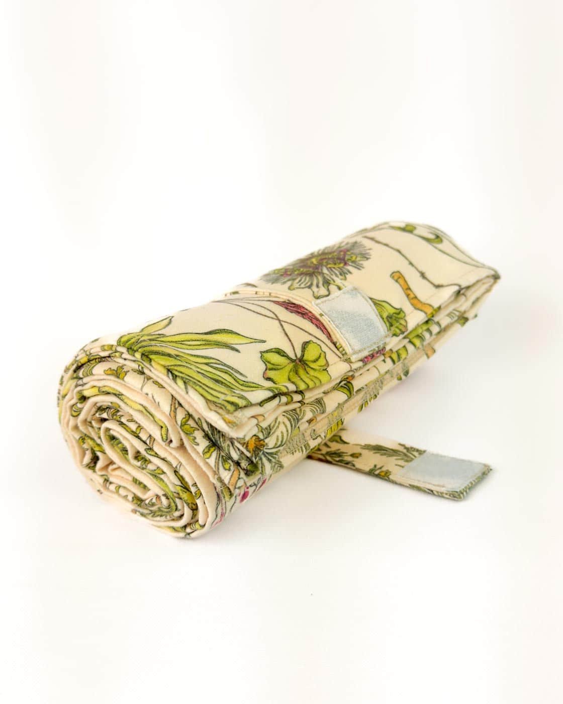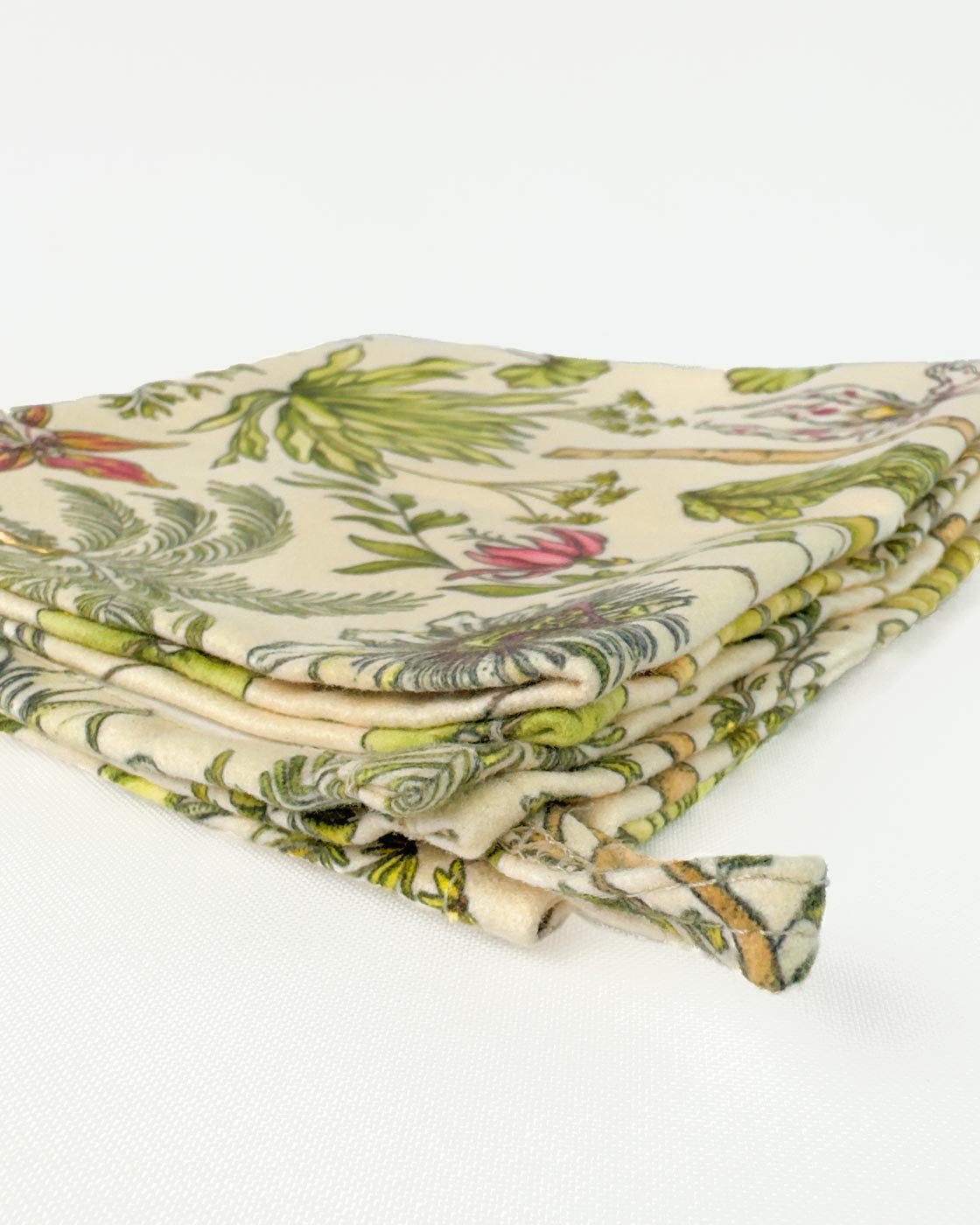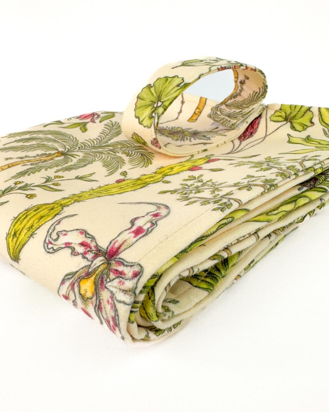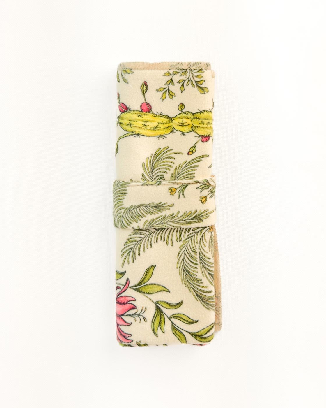 Vienen con nuestro estampado “Vegetación de La Sierra, heterogénea, relacional y vital – Un panorama de colores, tamaños y formas que cambia cada paso hacia arriba. Desde el mar caribe hasta los picos nevados, a cada planta de La Sierra se le asignó una función ecológica y espiritual que cumplir en el tejido de la vida. Hay plantas medicinales, comestibles, de uso ceremonial, para construir y tinturar.”. Un diseño inspirado en nuestro viaje a Ciudad Perdida en el departamento de Magdalena para la colección La Sierra Nevada, un llamado al cuidado de la Vida.