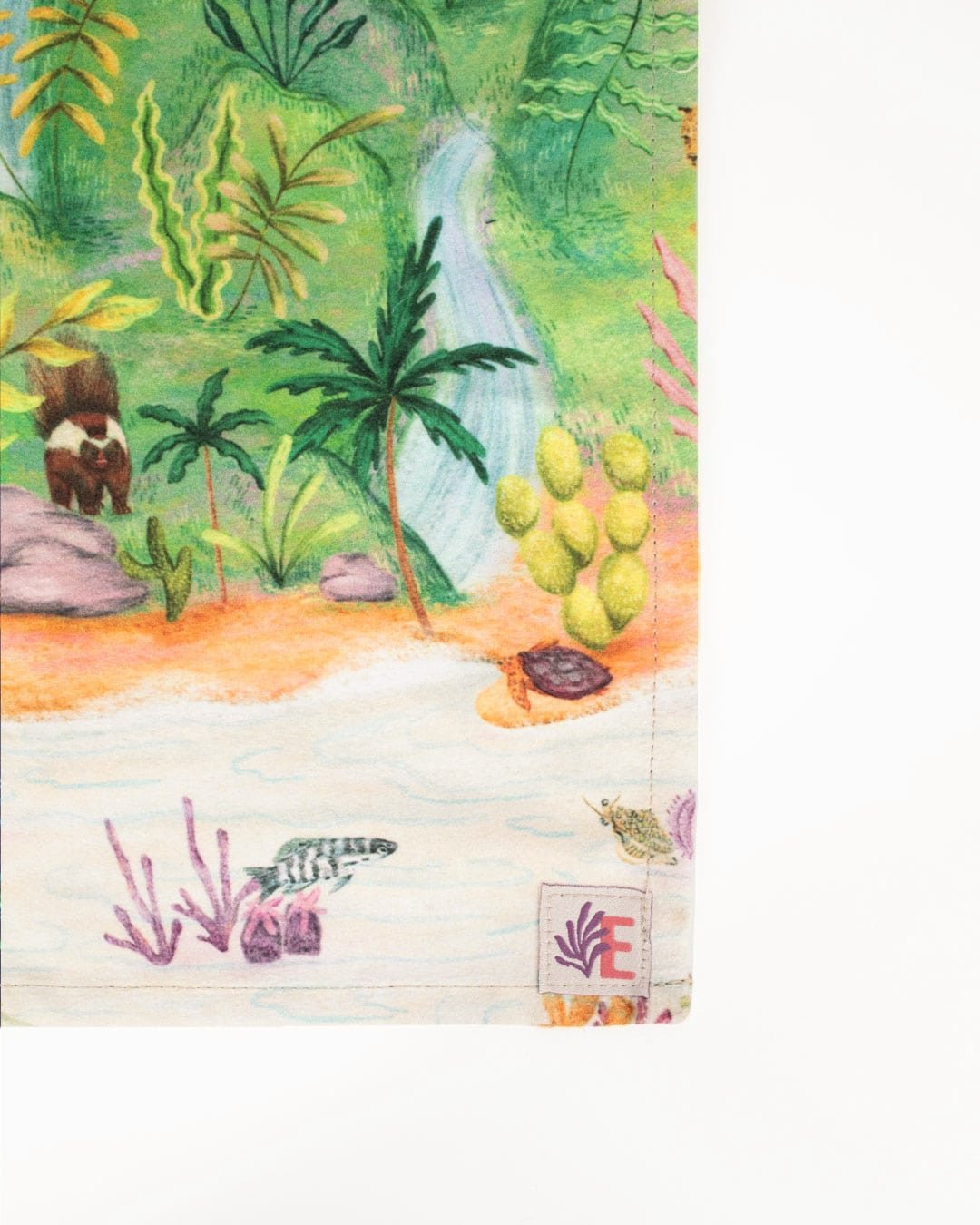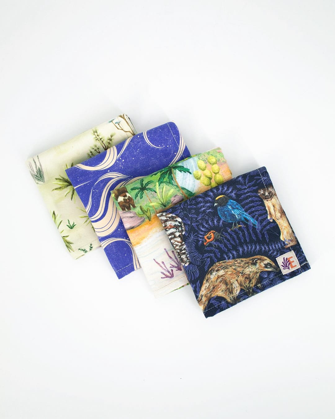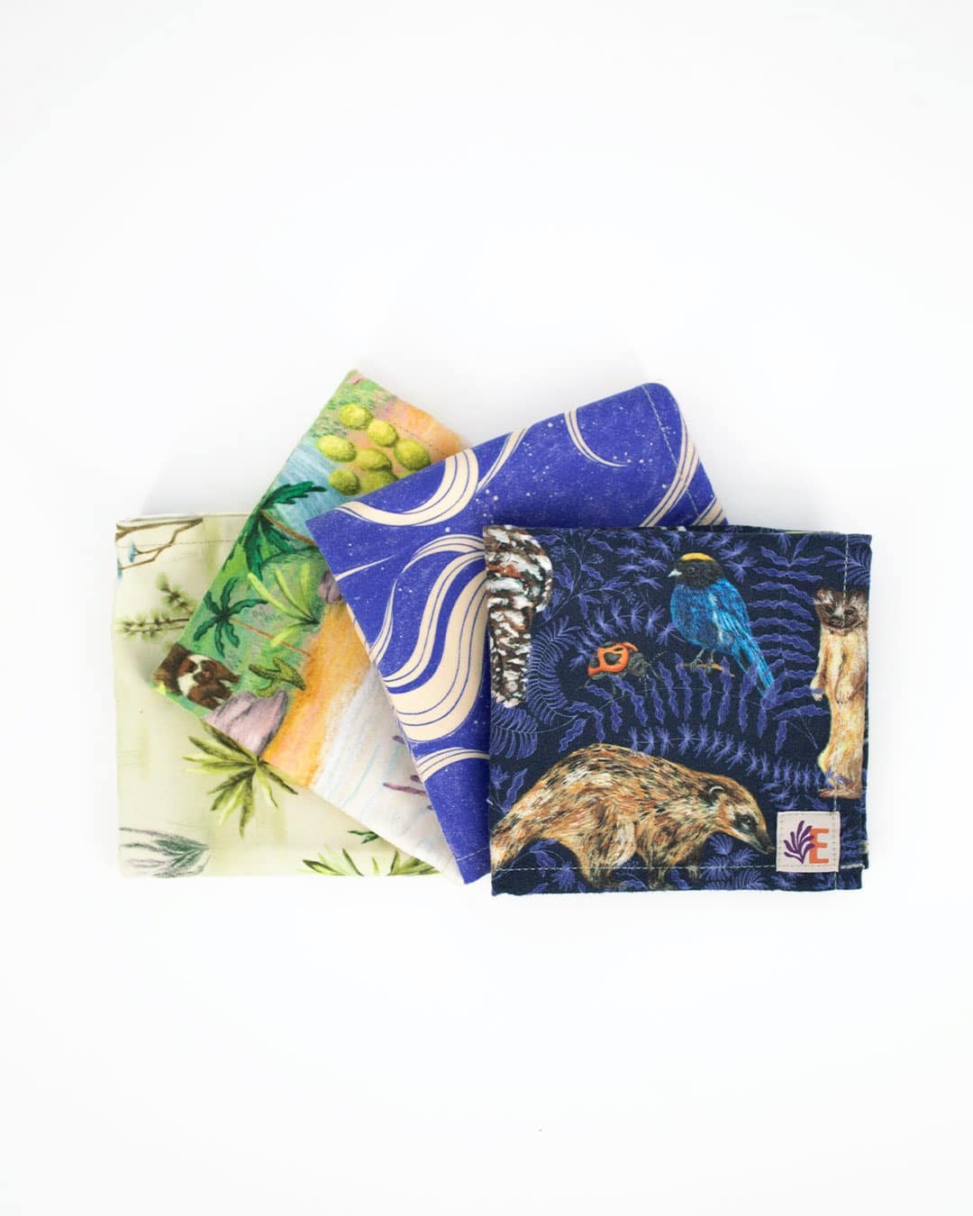 Cuatro (4) toallas en microfibra de secado rápido con nuestros estampados «Fauna Silvestre de Nariño», «El Fluir del Agua», «La Sierra Nevada de Santa Marta», «El Páramo de los Andes Nariñenses».